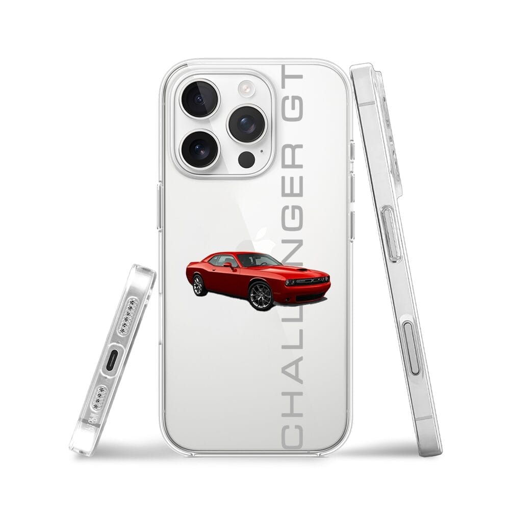 Etui do iPhone 16 Pro przeźroczyste, silikonowe Flexi, Szybkie Auta, czerwony Challenger GT