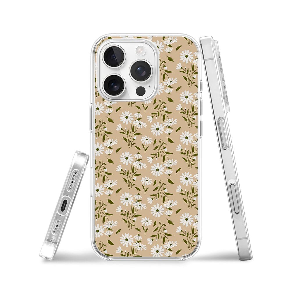 Etui do iPhone 16 Pro z MagSafe przeźroczyste, silikonowe Flexi, delikatne kwiatki na cielistym tle