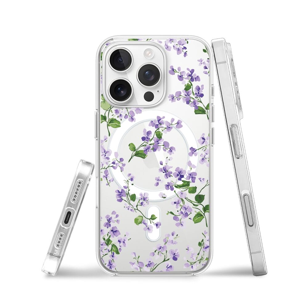 Etui do iPhone 16 Pro z MagSafe przeźroczyste, silikonowe Flexi, Fioletowe Bratki