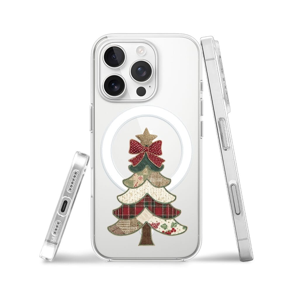 Etui do iPhone 16 Pro z MagSafe przeźroczyste, silikonowe Flexi, Przytulne święta, Kraciasta choinka