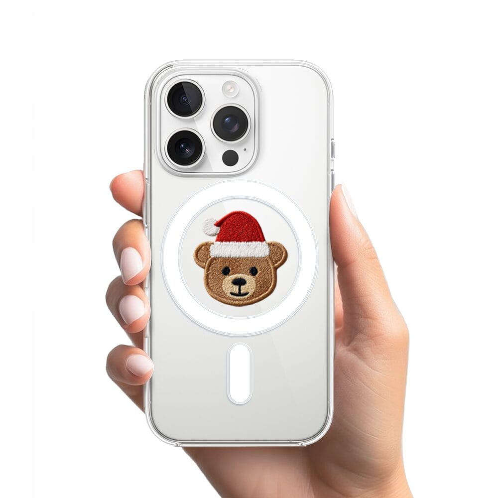 Etui do iPhone 16 Pro z MagSafe przeźroczyste, silikonowe Flexi, Przytulne święta, Miś mikołajek