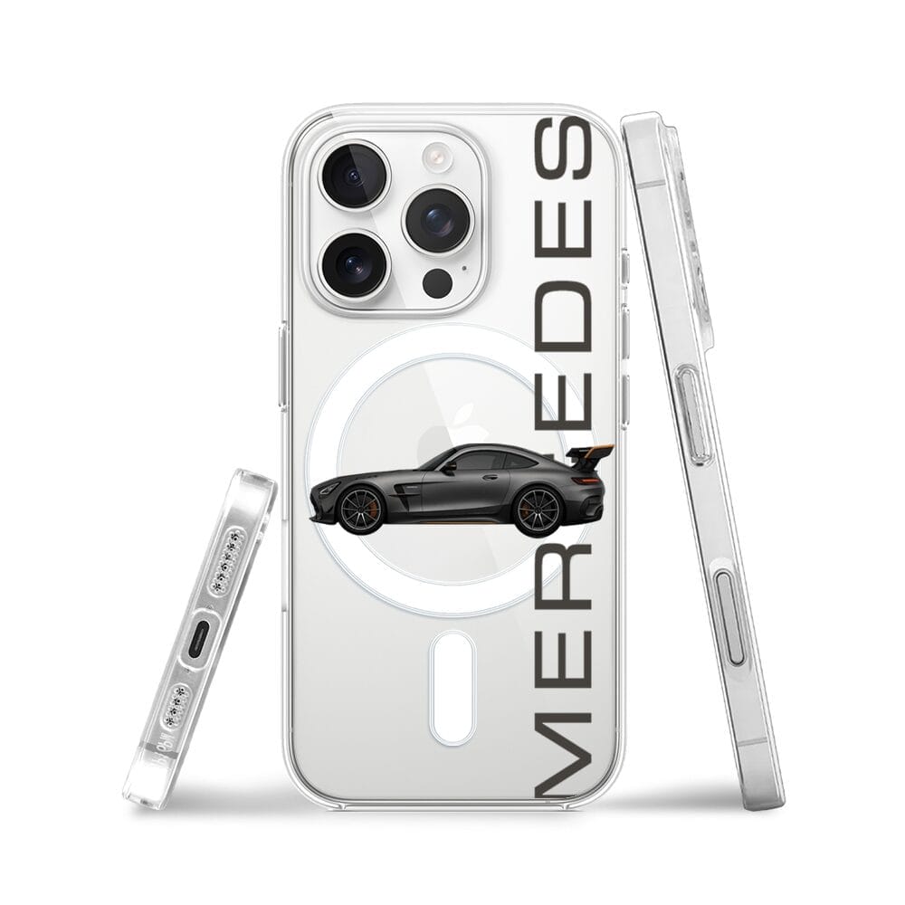 Etui do iPhone 16 Pro z MagSafe przeźroczyste, silikonowe Flexi, Szybkie Auta, Stalowe AMG-GT