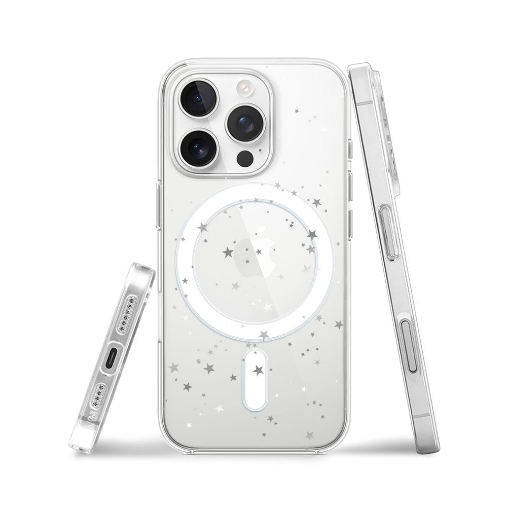 Etui do iPhone 16 Pro z MagSafe przeźroczyste, silikonowe Flexi, Zimowa magia, Szampańskie gwiazdki