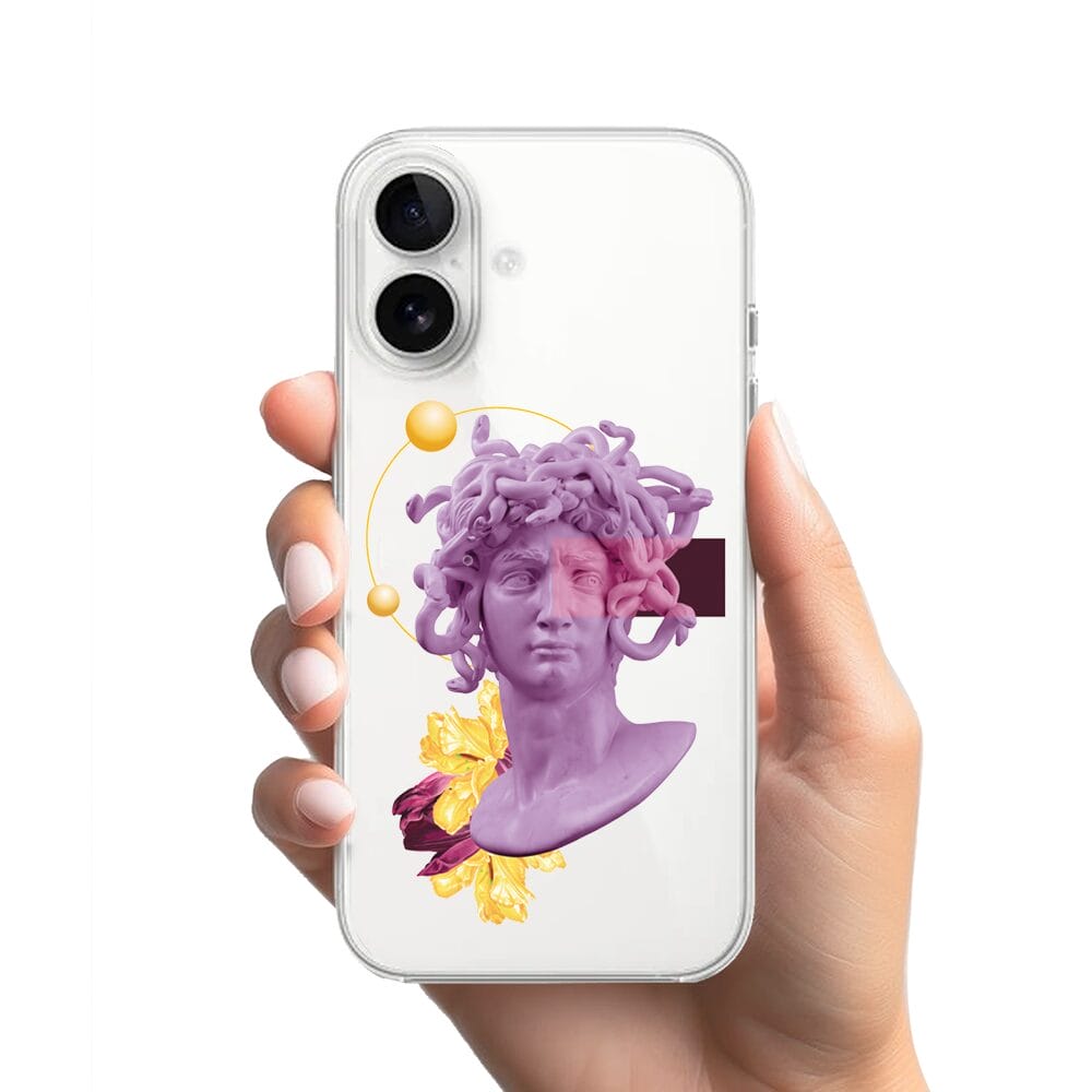 Etui do iPhone 16 przeźroczyste, silikonowe Flexi, antyczna figura, meduza