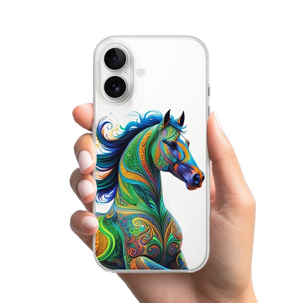Etui do iPhone 16 przeźroczyste, silikonowe Flexi, Dzika Mandala, Koń