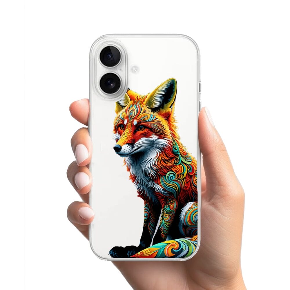 Etui do iPhone 16 przeźroczyste, silikonowe Flexi, Dzika Mandala, Lis