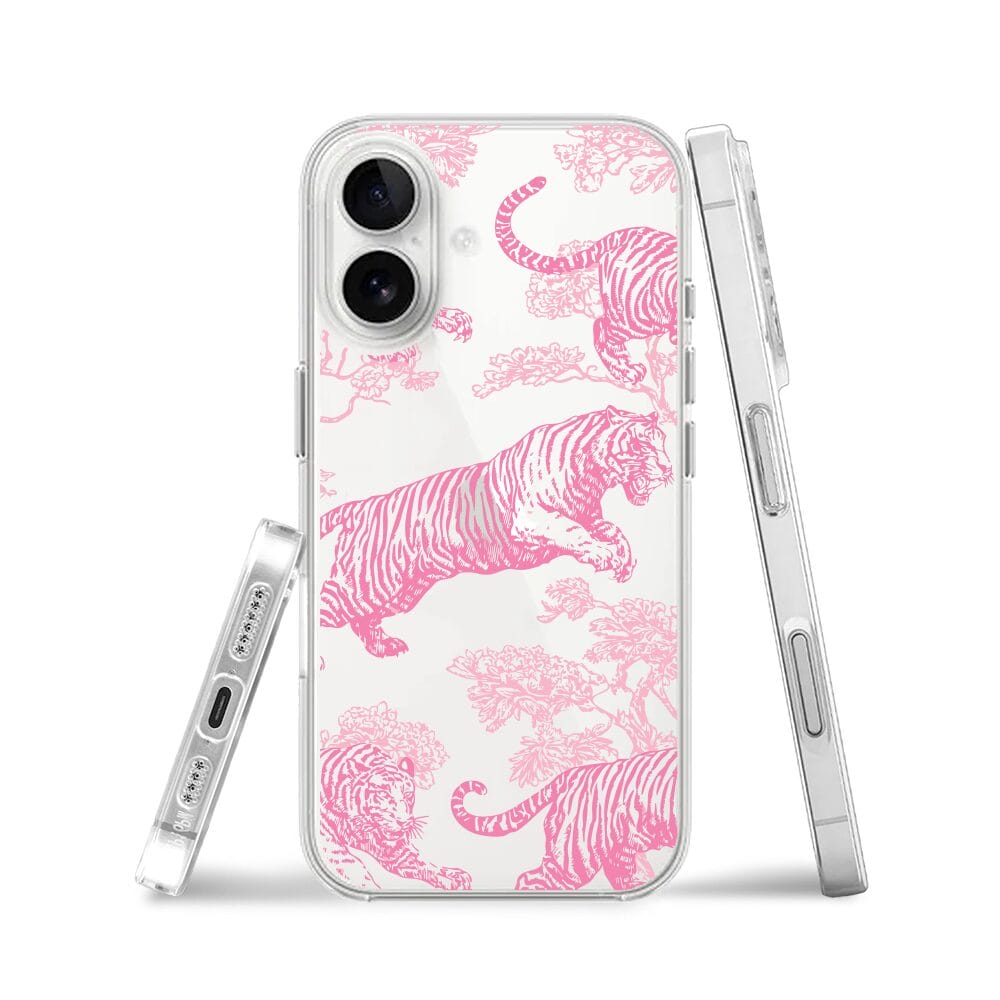 Etui do iPhone 16 przeźroczyste, silikonowe Flexi, Mystic, Różowe tygrysy