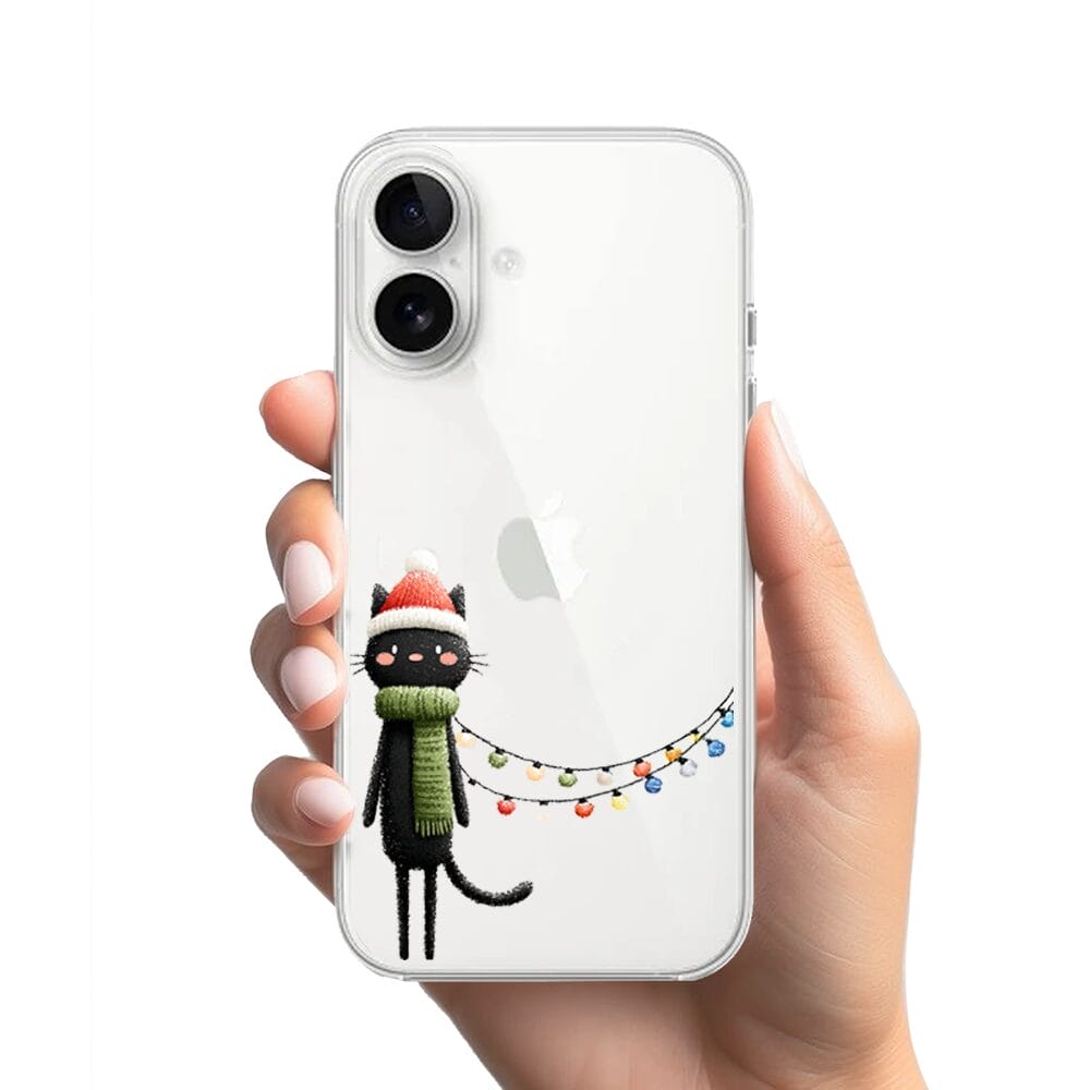 Etui do iPhone 16 przeźroczyste, silikonowe Flexi, Przytulne święta, Kot przebrany za elfa
