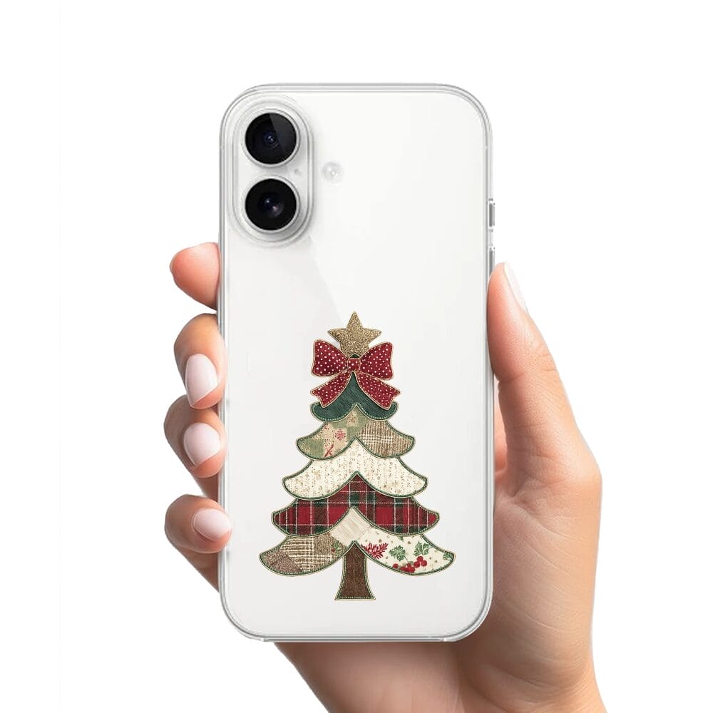 Etui do iPhone 16 przeźroczyste, silikonowe Flexi, Przytulne święta, Kraciasta choinka