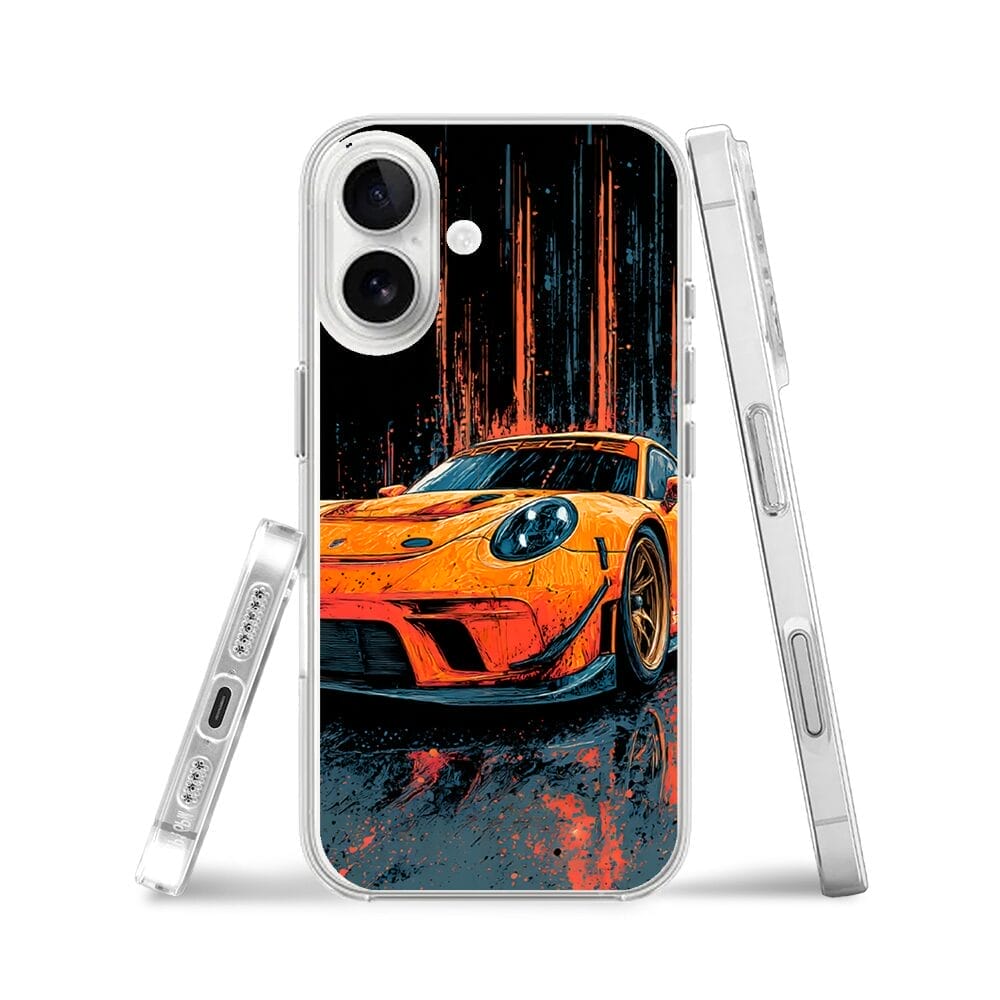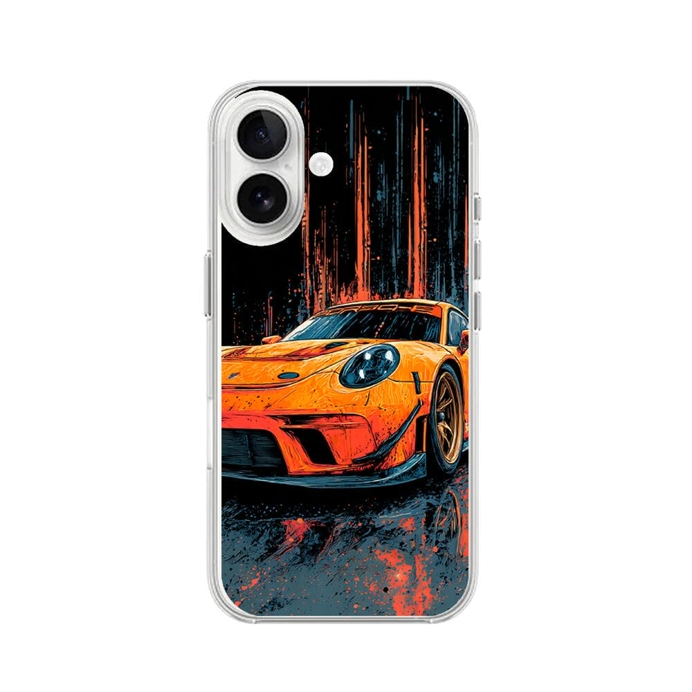 Etui do iPhone 16 przeźroczyste, silikonowe Flexi, Szybkie Auta, Pomarańczowa 911