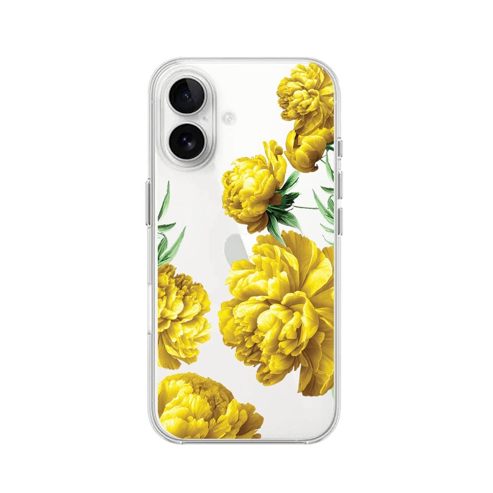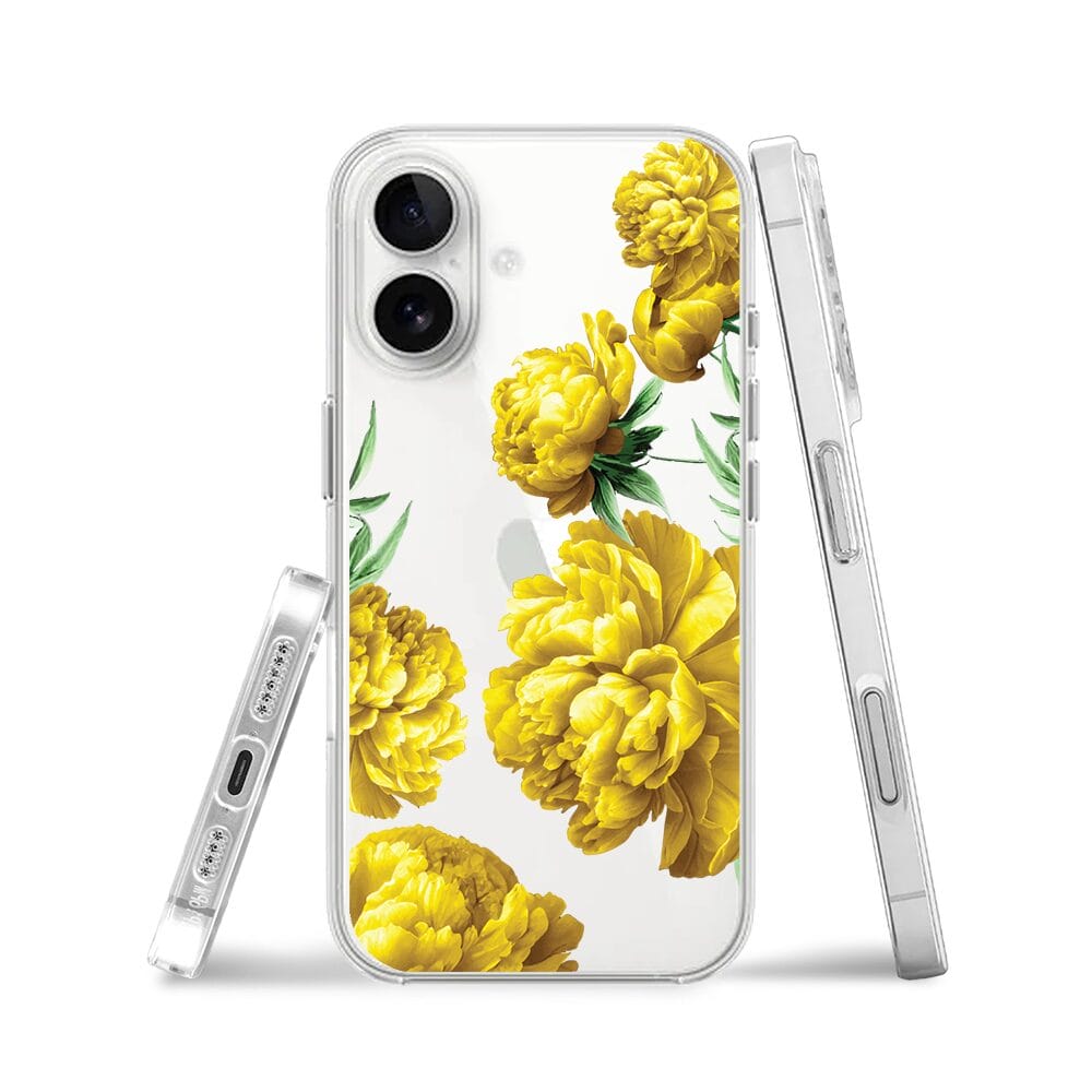 Etui do iPhone 16 przeźroczyste, silikonowe Flexi, żółte piwonie