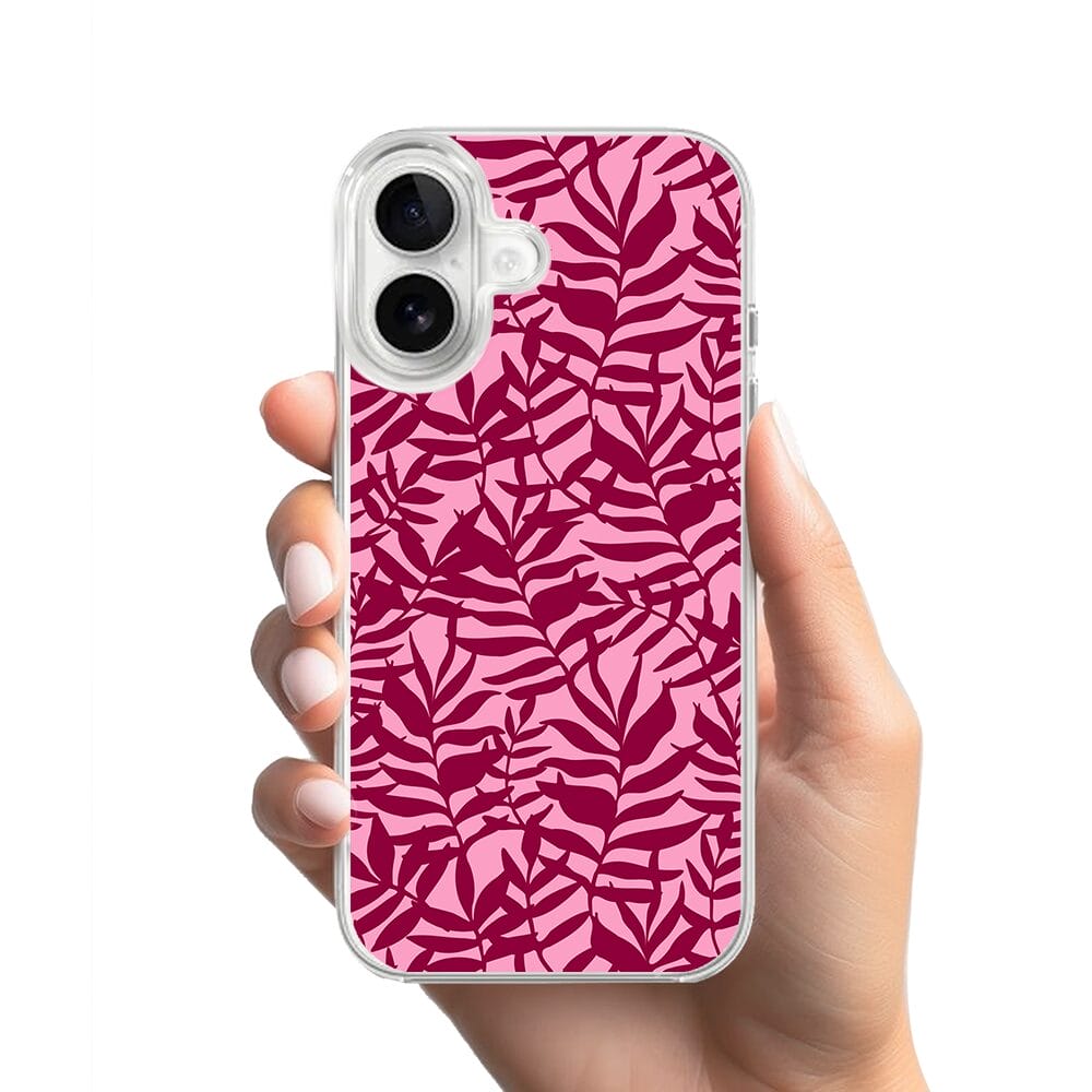 Etui do iPhone 16 z MagSafe przeźroczyste, silikonowe Flexi, bordowe liście