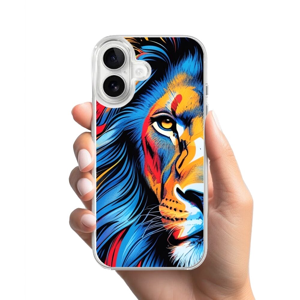 Etui do iPhone 16 z MagSafe przeźroczyste, silikonowe Flexi, Dzika Mandala, Lwie spojrzenie
