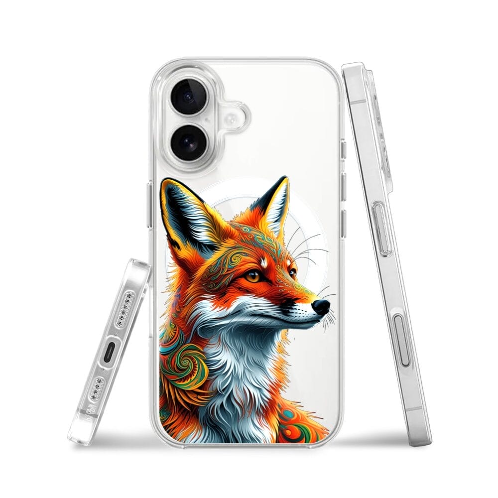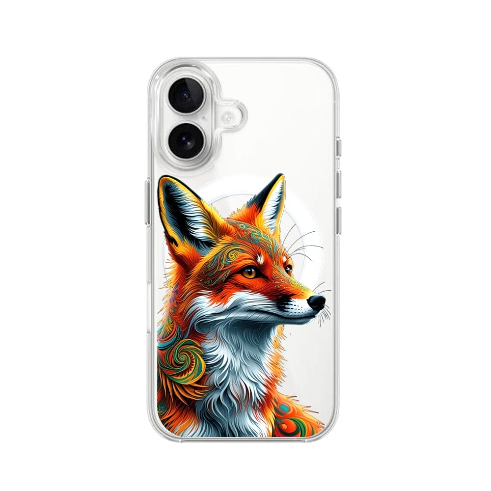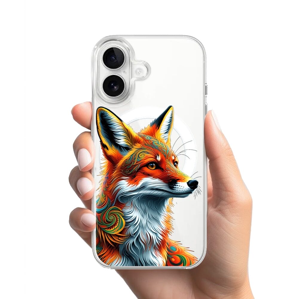 Etui do iPhone 16 z MagSafe przeźroczyste, silikonowe Flexi, Dzika Mandala, Twarz lisa