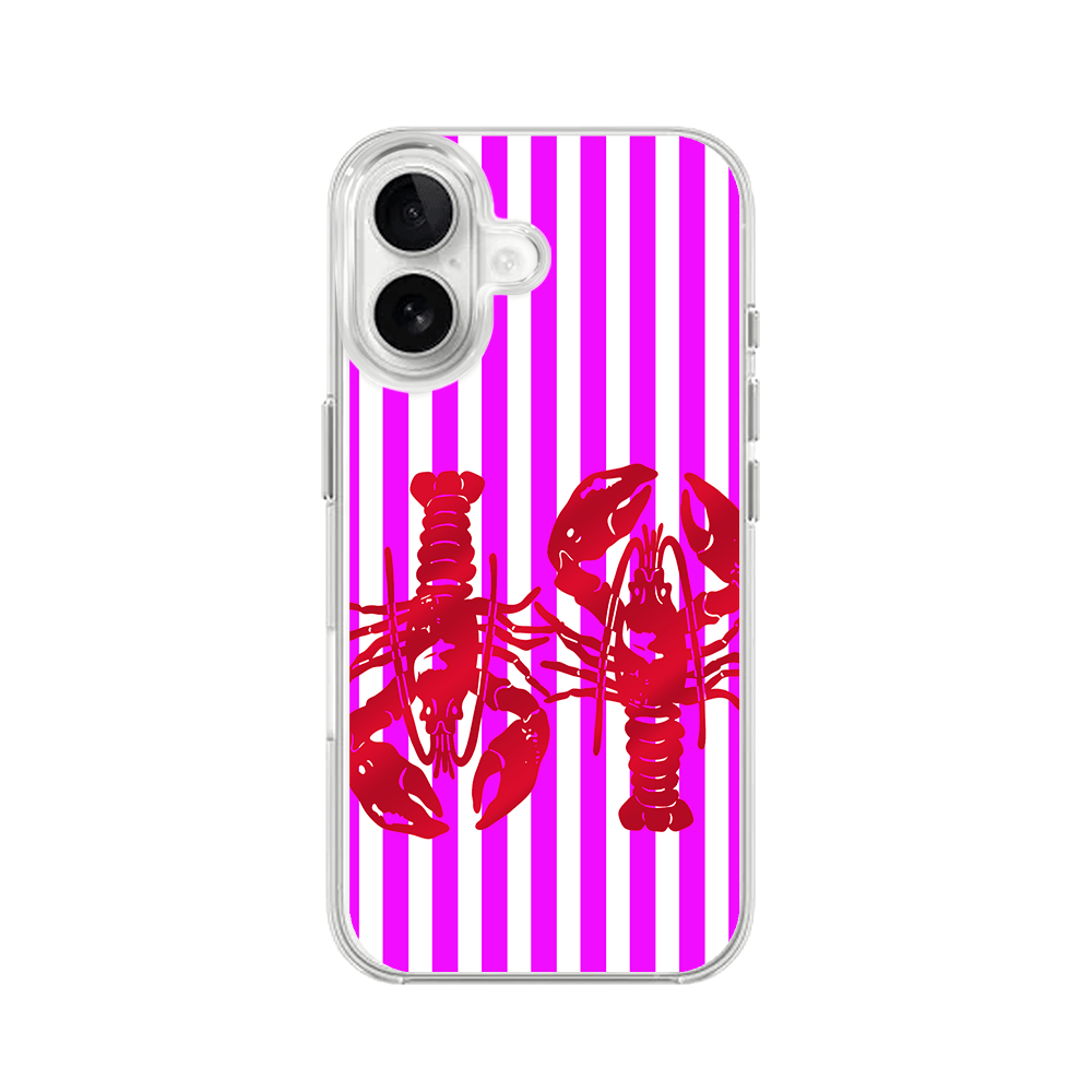 Etui do iPhone 16 z MagSafe przeźroczyste, silikonowe Flexi, kraby z różowymi paskami