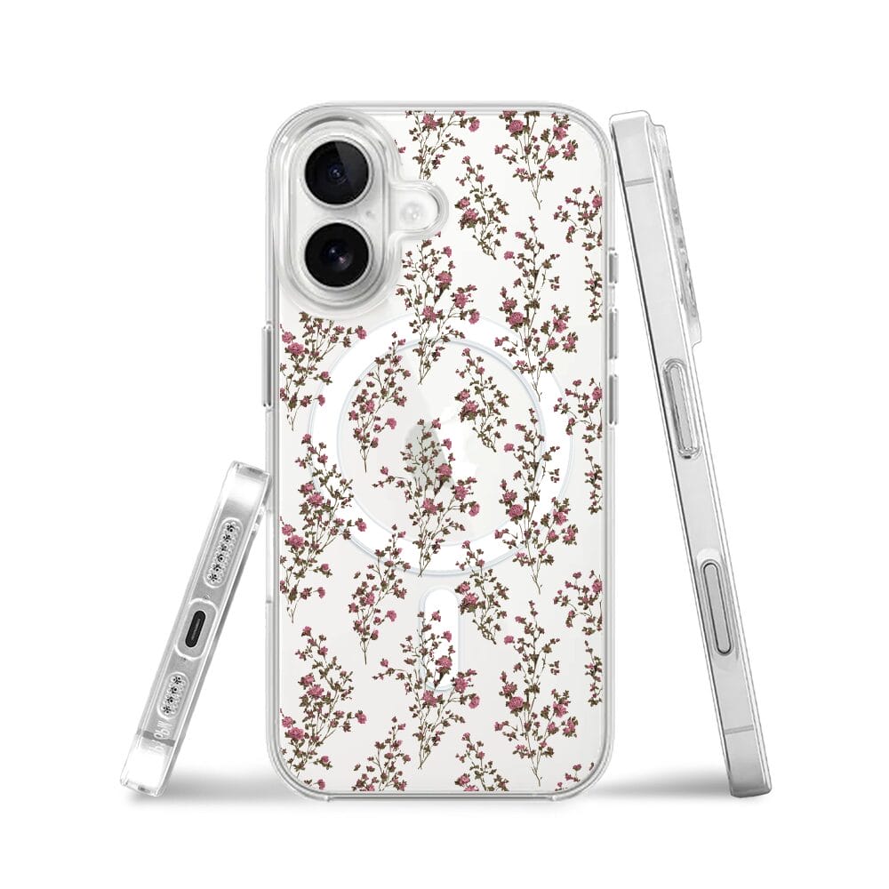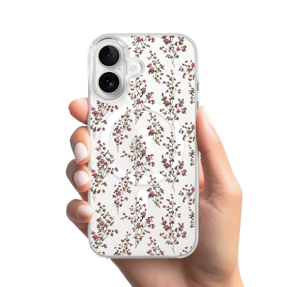 Etui do iPhone 16 z MagSafe przeźroczyste, silikonowe Flexi, Mini Patterns, Różyczki