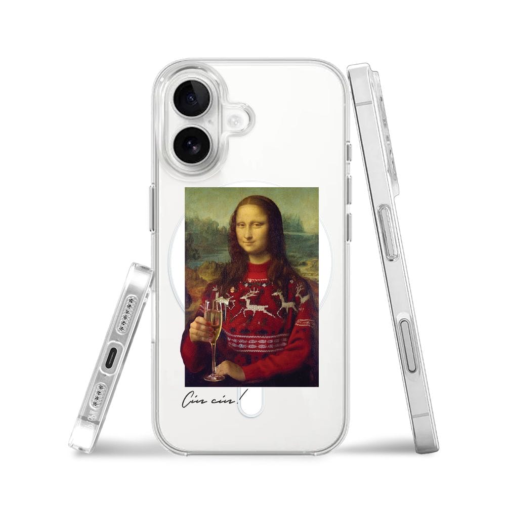 Etui do iPhone 16 z MagSafe przeźroczyste, silikonowe Flexi, Mona Lisa z szampanem