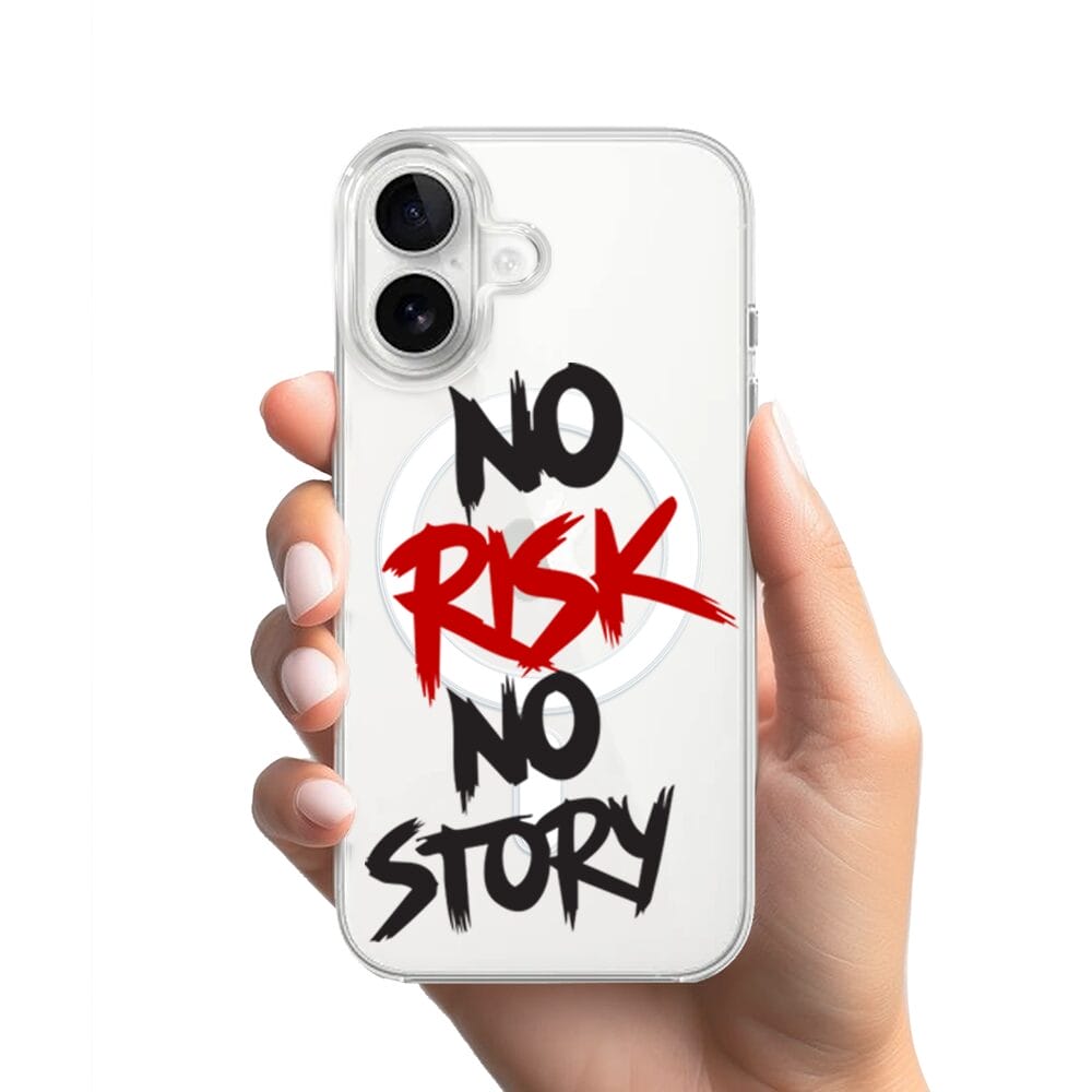 Etui do iPhone 16 z MagSafe przeźroczyste, silikonowe Flexi, Positive Vibes, No Risk No Story
