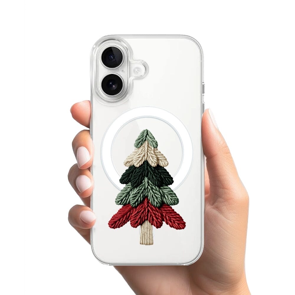 Etui do iPhone 16 z MagSafe przeźroczyste, silikonowe Flexi, Przytulne święta, Dziana choinka