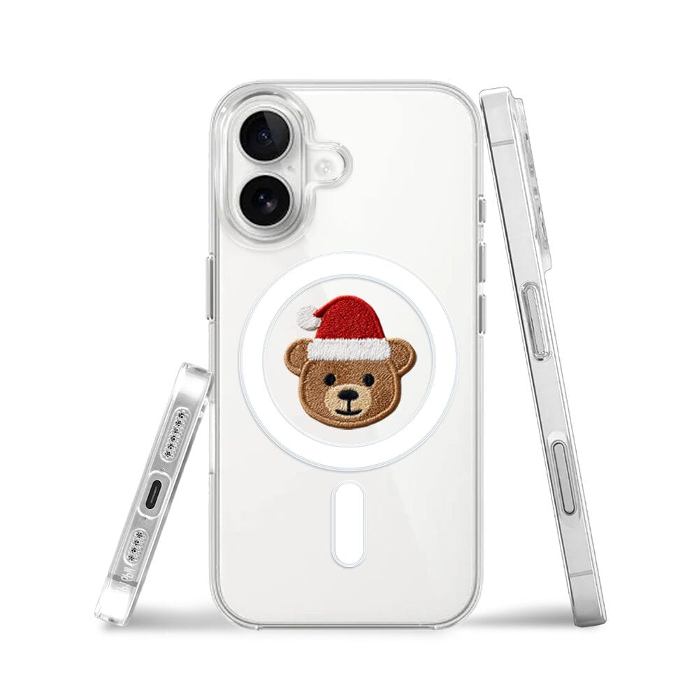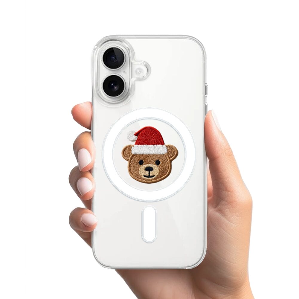 Etui do iPhone 16 z MagSafe przeźroczyste, silikonowe Flexi, Przytulne święta, Miś mikołajek