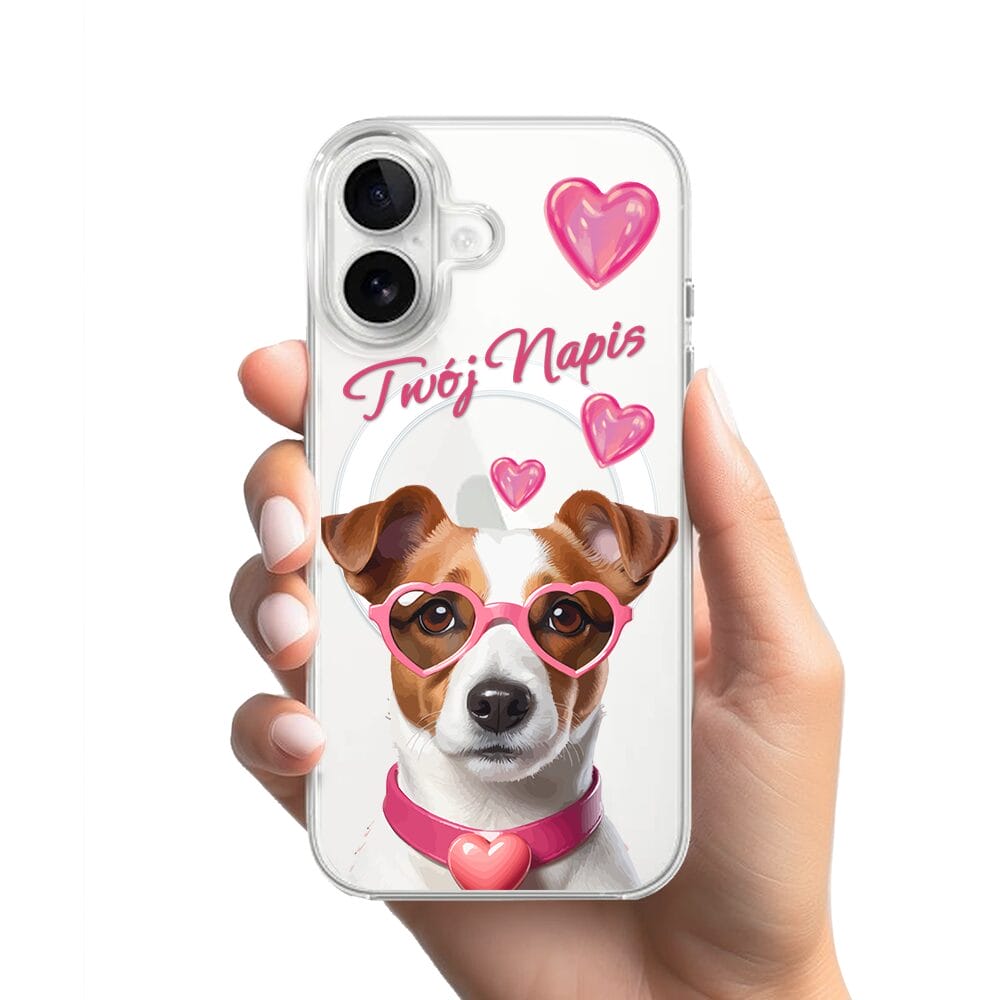 Etui do iPhone 16 z MagSafe przeźroczyste, silikonowe Flexi, Puppy Love, pies rasy Jack Russell Terrier