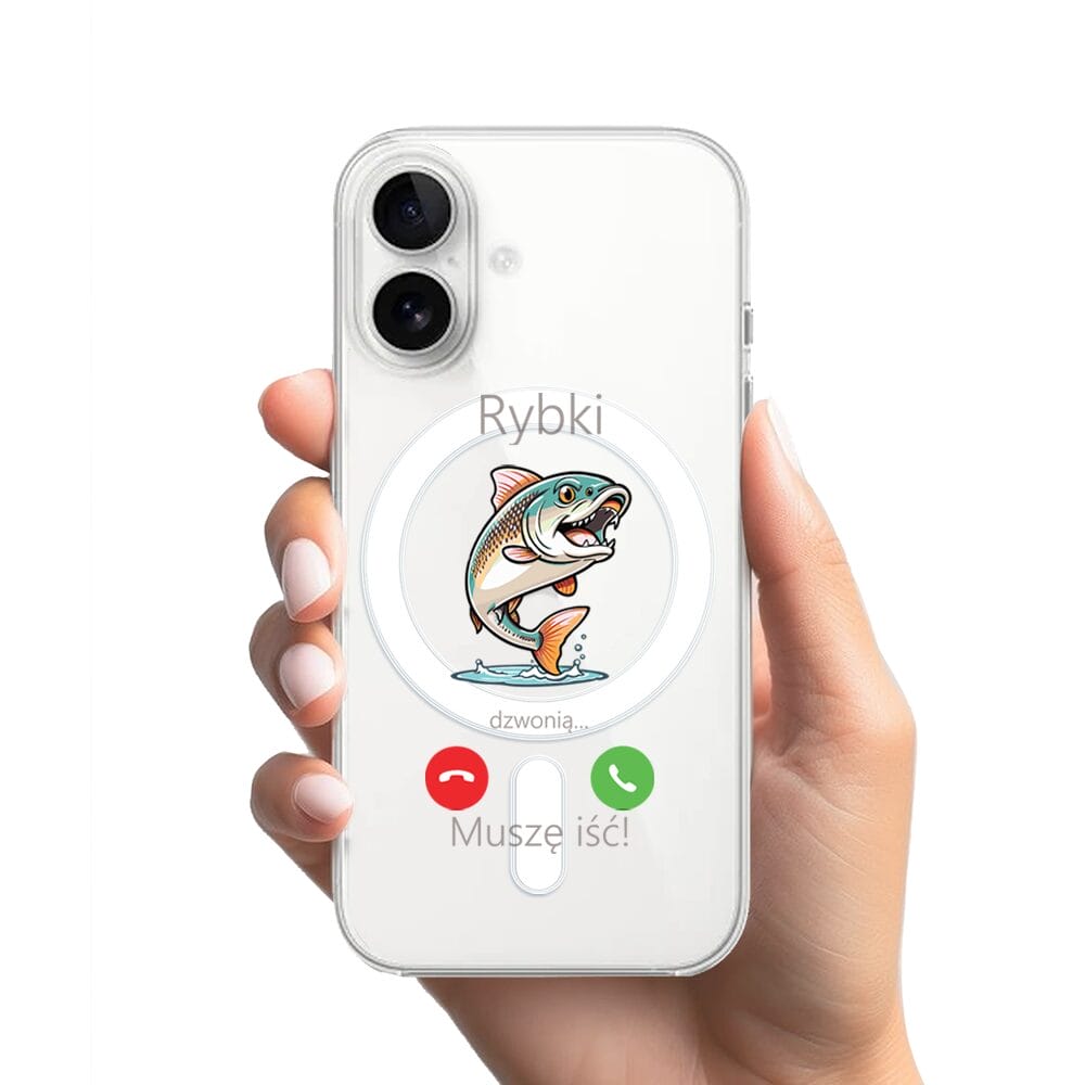 Etui do iPhone 16 z MagSafe przeźroczyste, silikonowe Flexi, rybki dzwonią