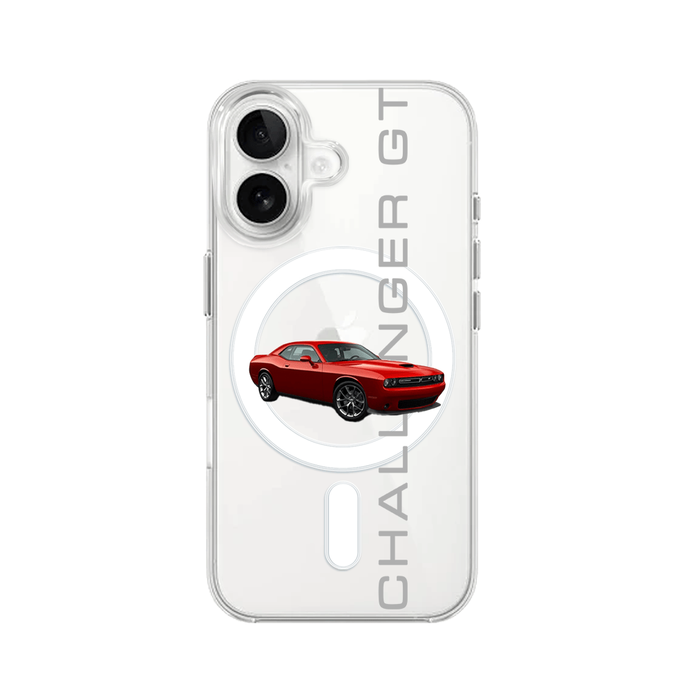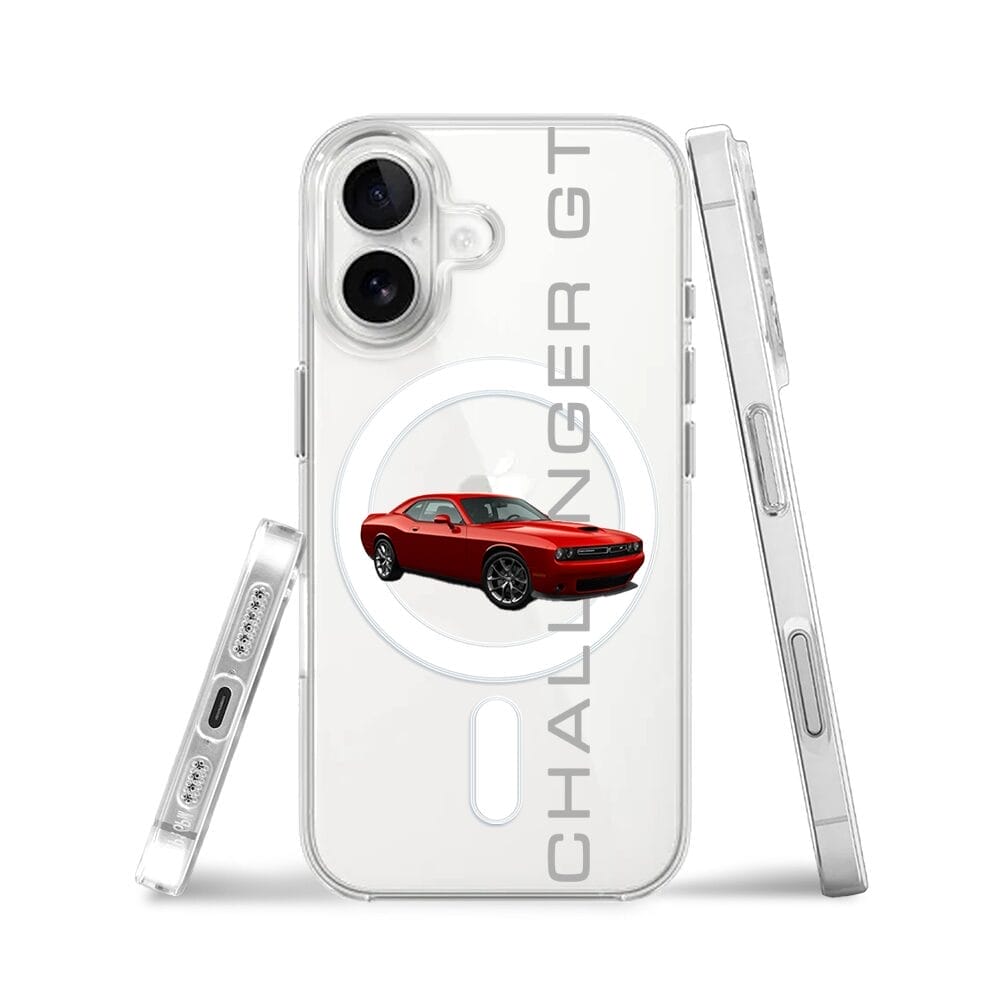 Etui do iPhone 16 z MagSafe przeźroczyste, silikonowe Flexi, Szybkie Auta, czerwony Challenger GT