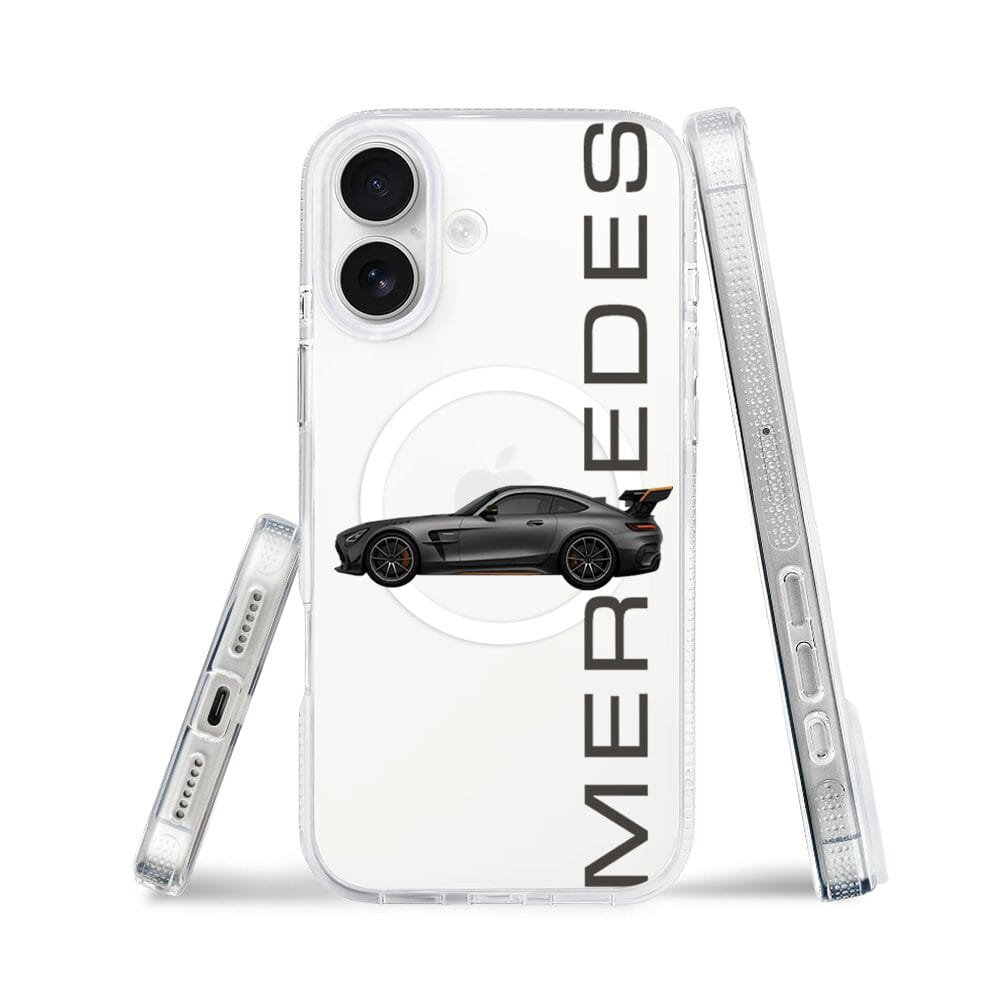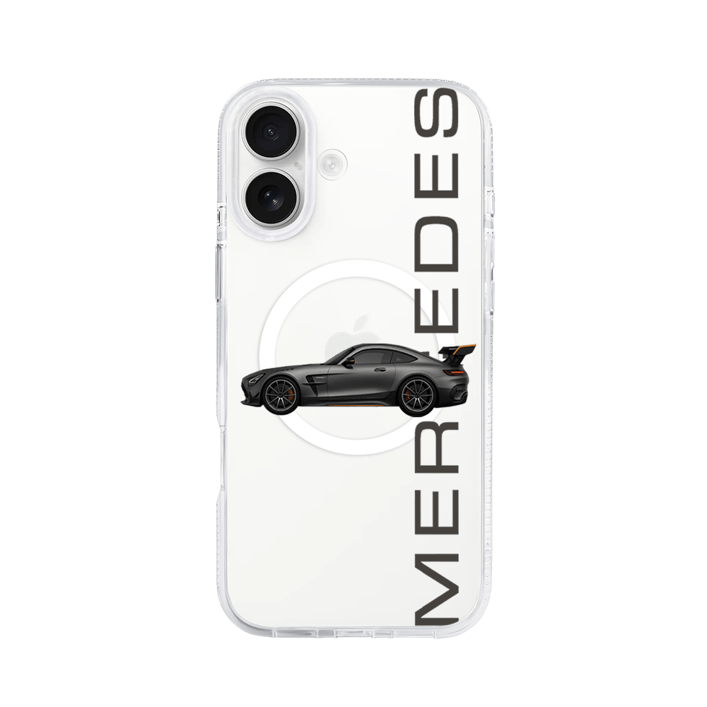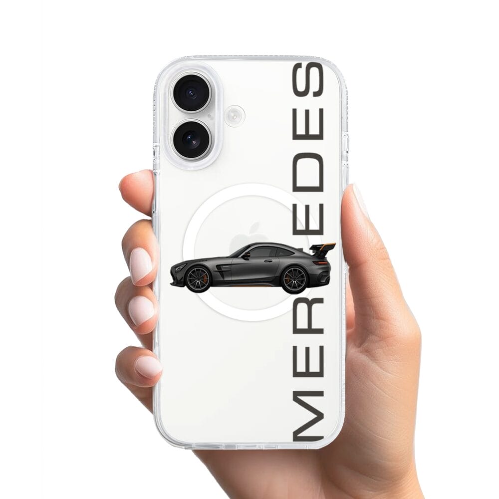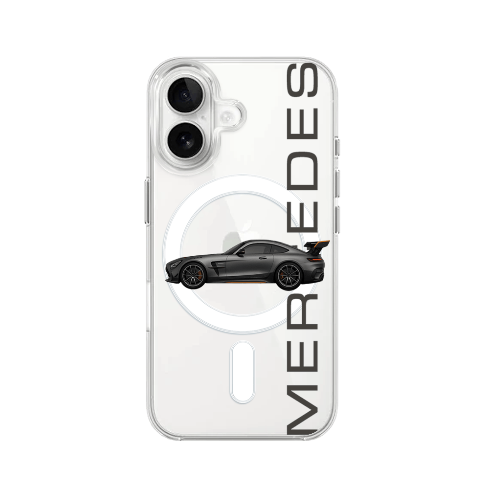 Etui do iPhone 16 z MagSafe przeźroczyste, silikonowe Flexi, Szybkie Auta, Stalowe AMG-GT