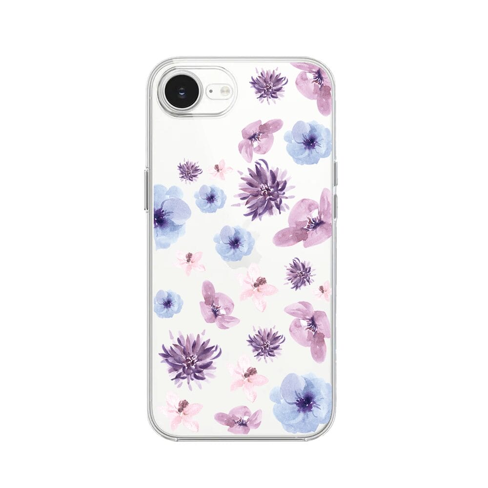 Etui do iPhone 16e przeźroczyste, silikonowe Flexi, kwiatki niebieskie, fioletowe