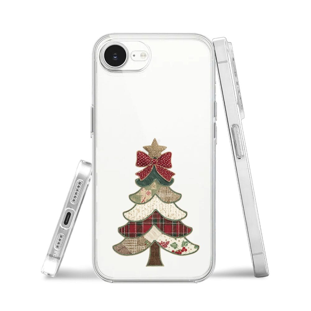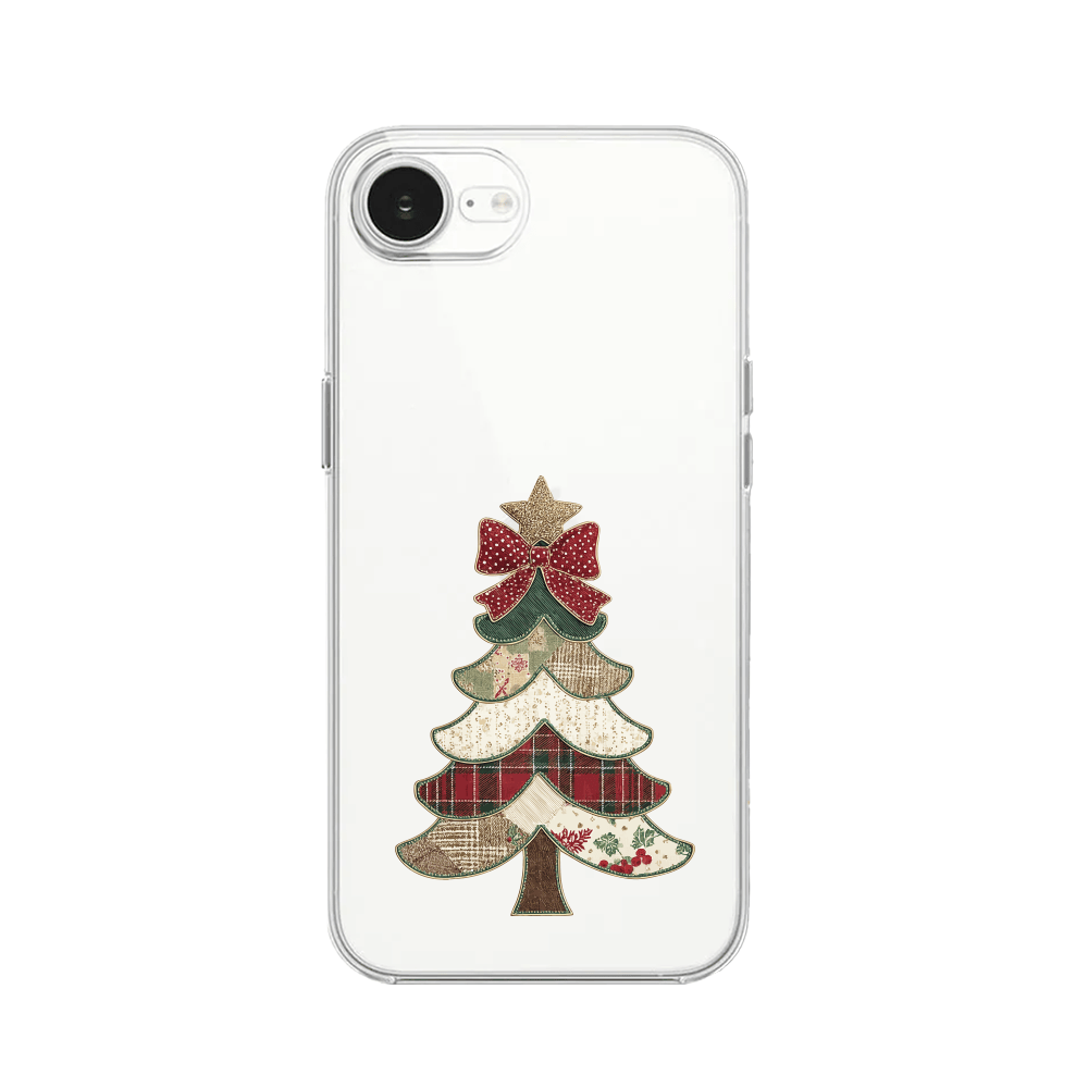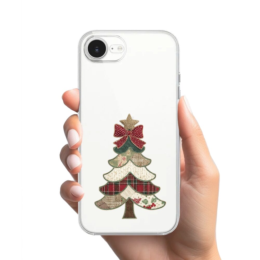 Etui do iPhone 16e przeźroczyste, silikonowe Flexi, Przytulne święta, Kraciasta choinka