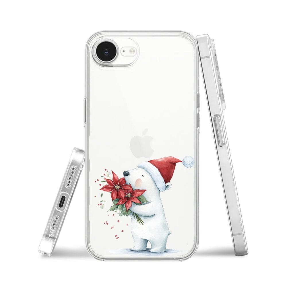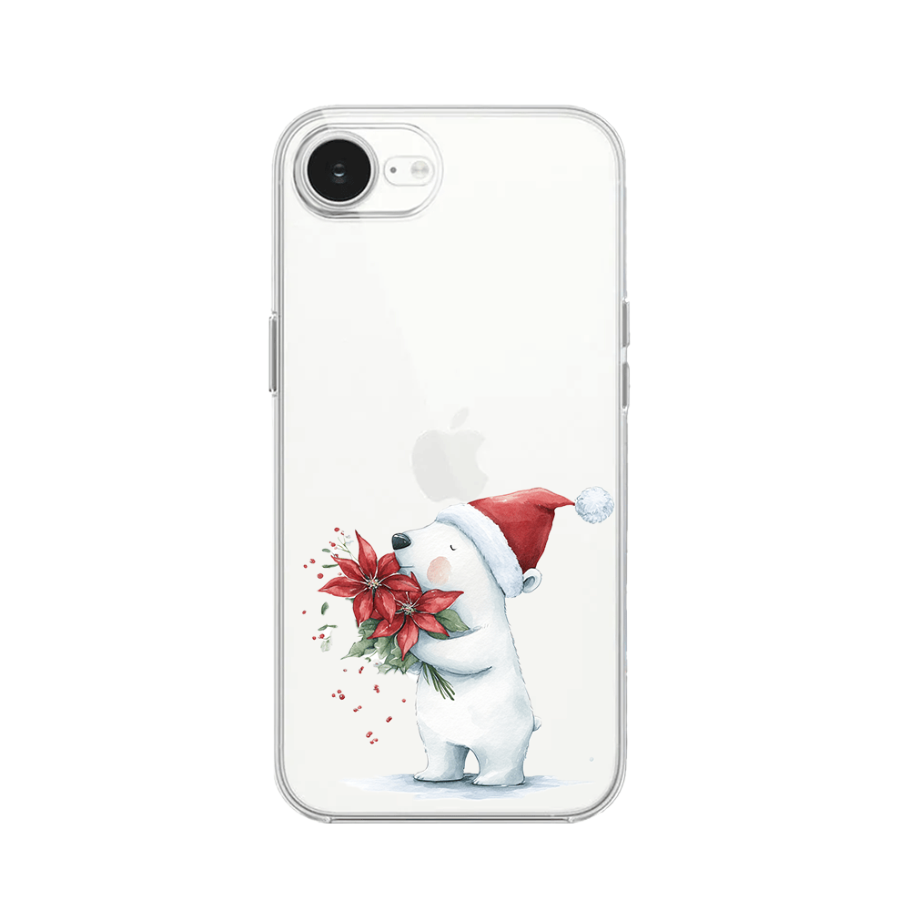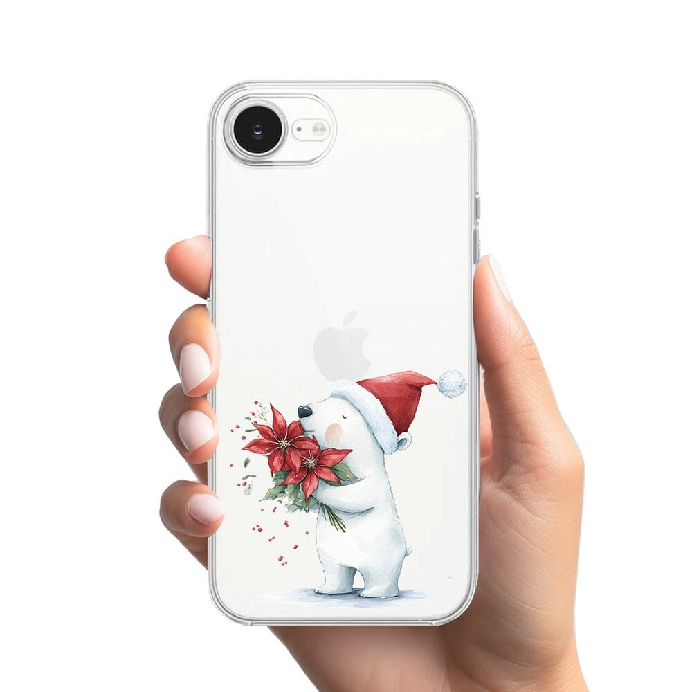 Etui do iPhone 16e przeźroczyste, silikonowe Flexi, Przytulne święta, Miś świąteczny