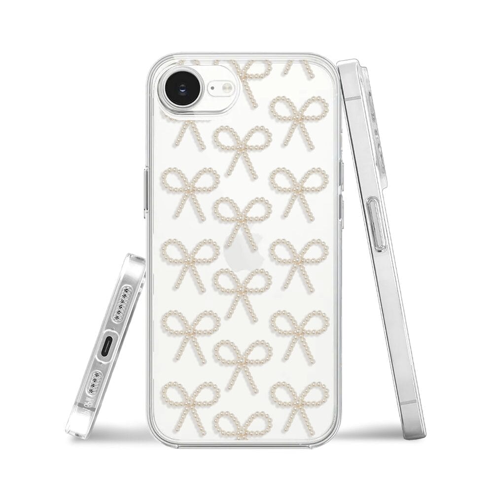 Etui do iPhone 16e przeźroczyste, silikonowe Flexi, Przytulne święta, złote kokardki