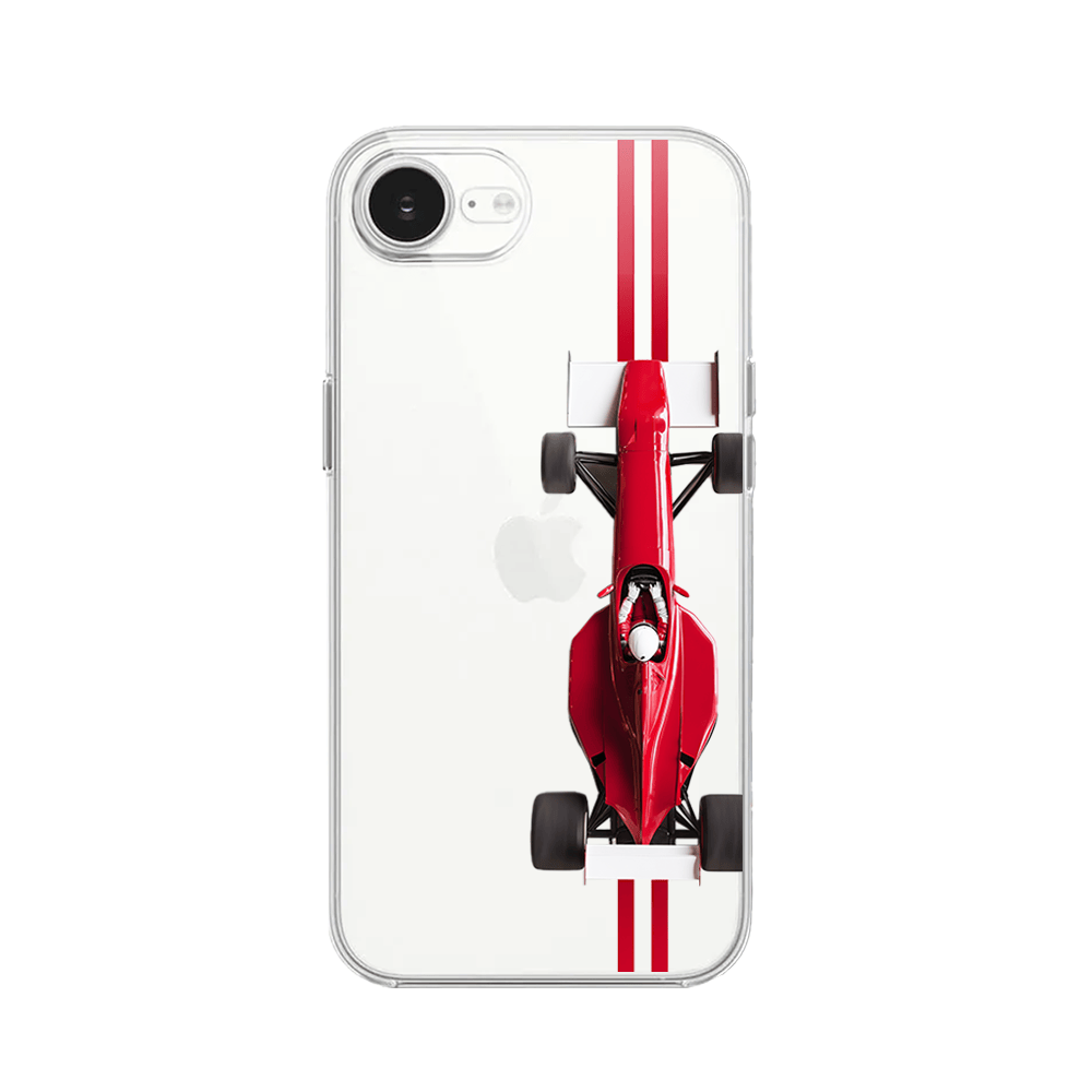 Etui do iPhone 16e przeźroczyste, silikonowe Flexi, Szybkie Auta, czerwone F1