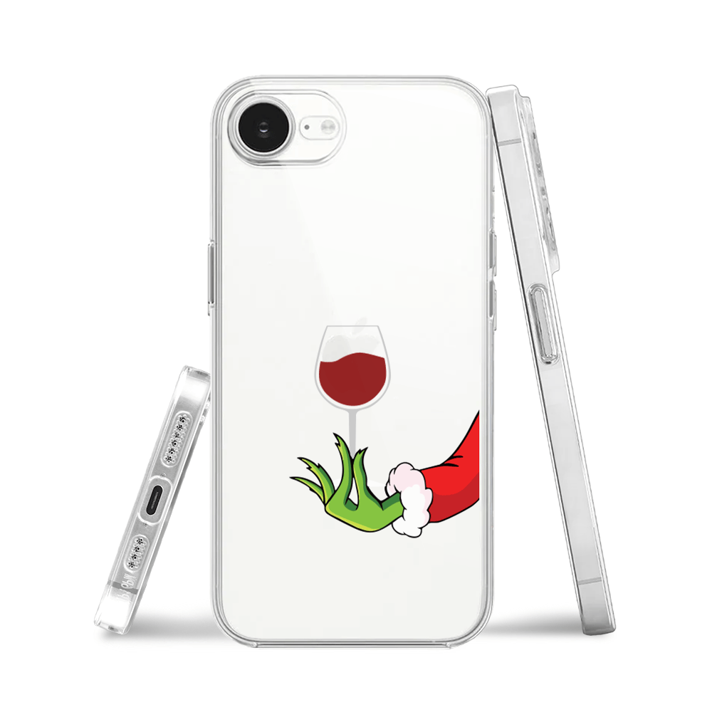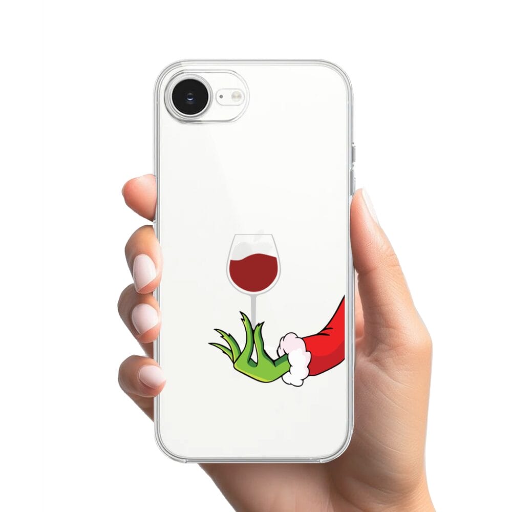 Etui do iPhone 16e przeźroczyste, silikonowe Flexi, Zielony psotnik z lampką wina