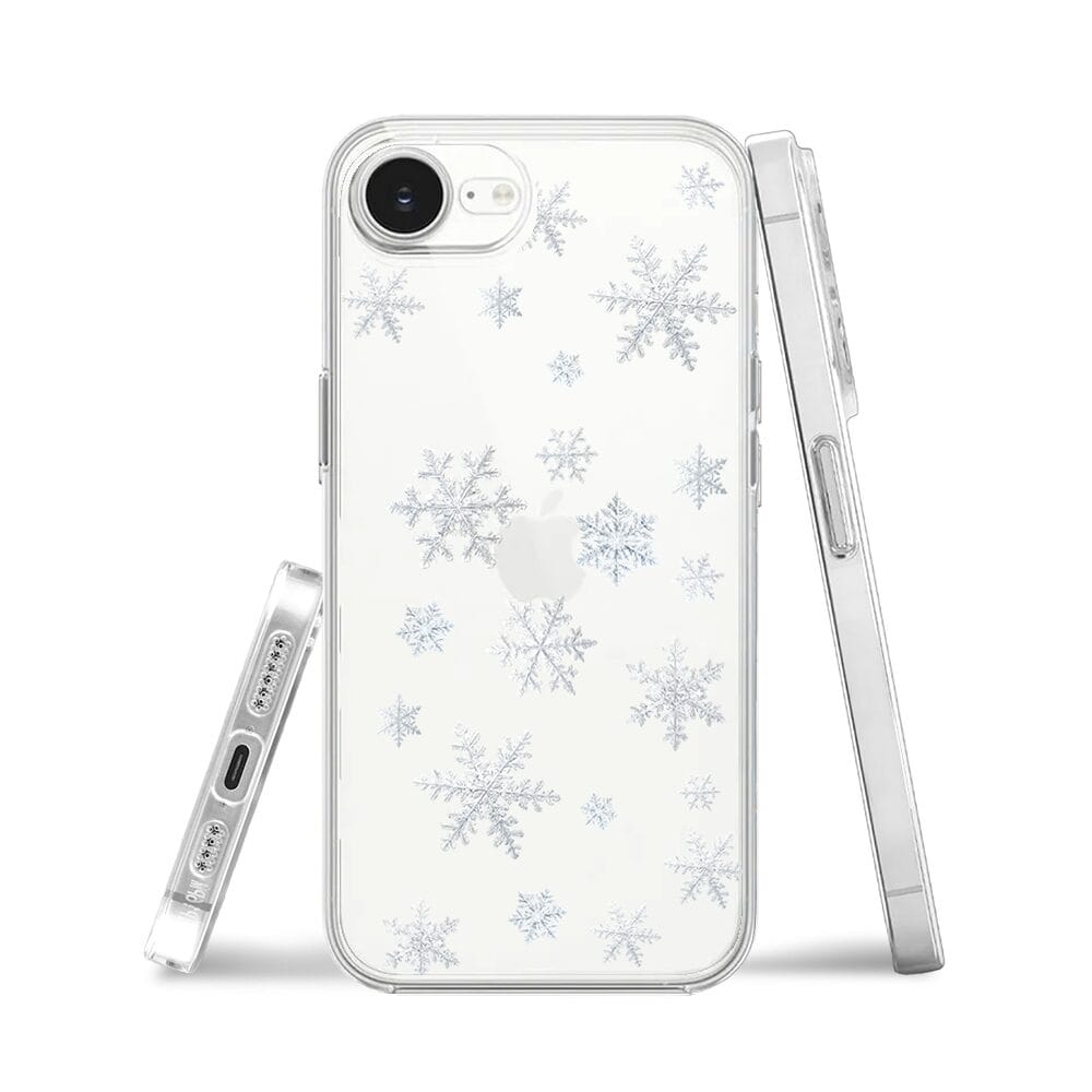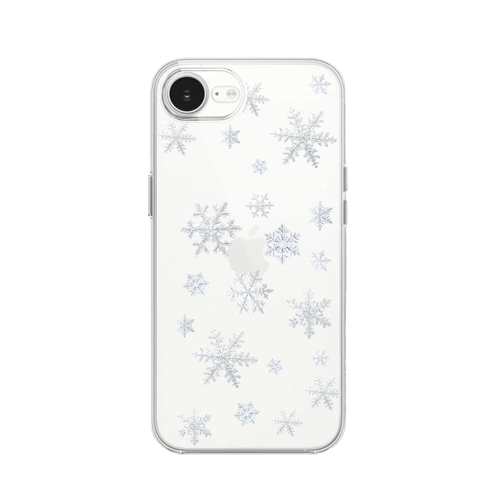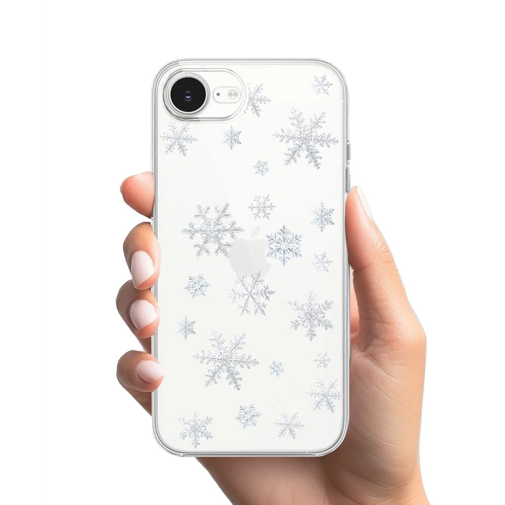 Etui do iPhone 16e przeźroczyste, silikonowe Flexi, Zimowa magia, Delikatne płatki śniegu