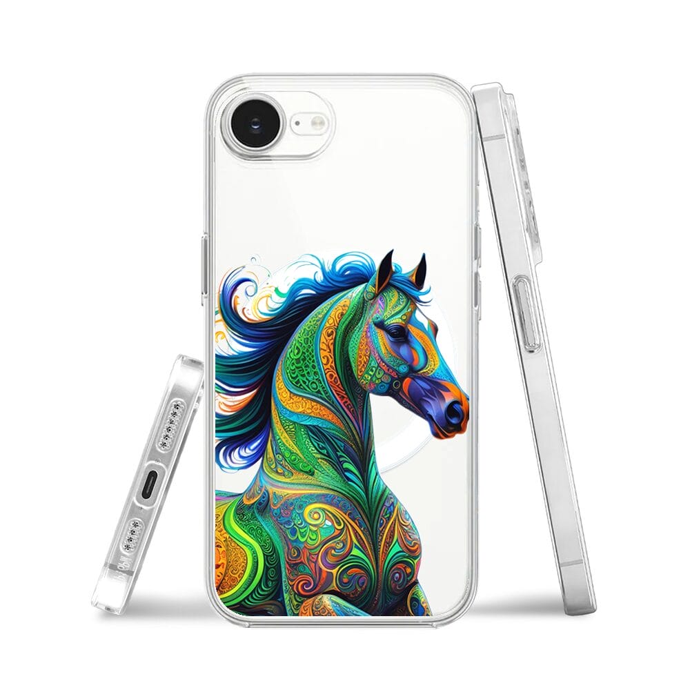 Etui do iPhone 16e z MagSafe przeźroczyste, silikonowe Flexi, Dzika Mandala, Koń