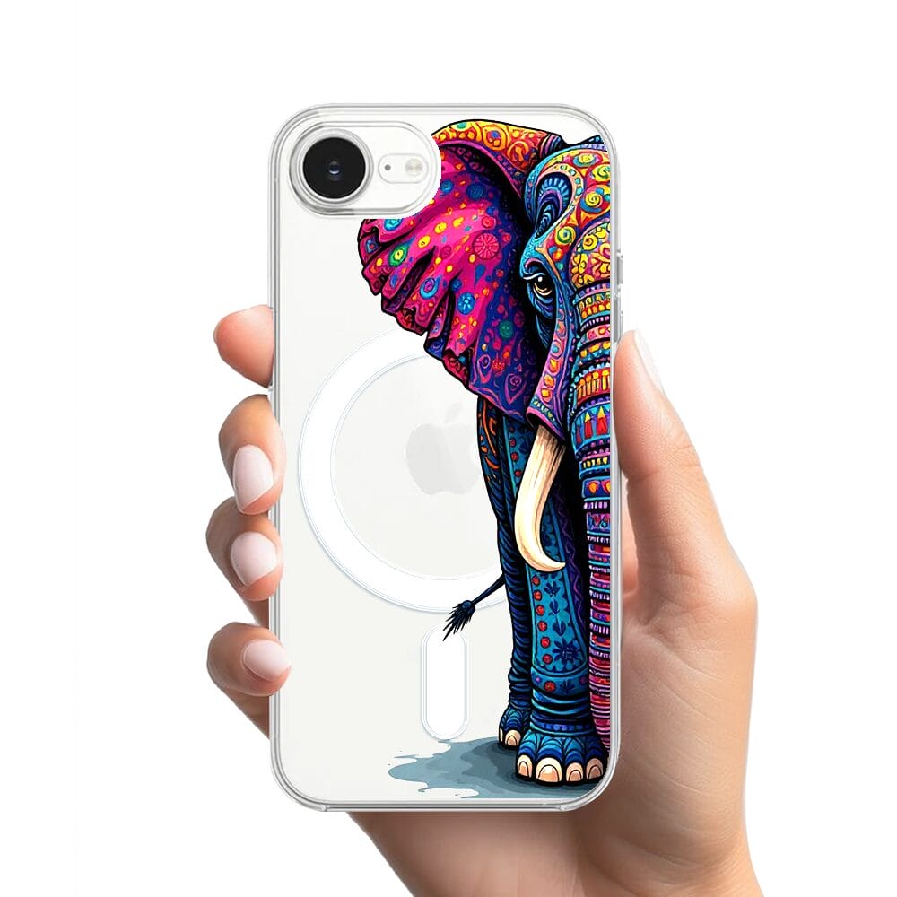 Etui do iPhone 16e z MagSafe przeźroczyste, silikonowe Flexi, Dzika Mandala, Słoń