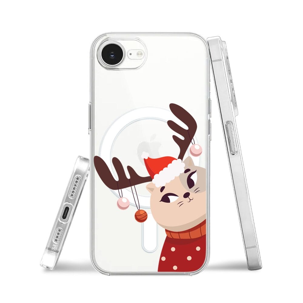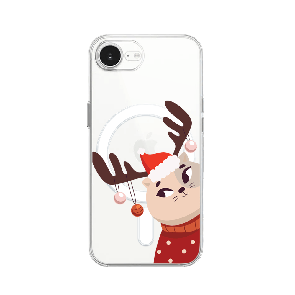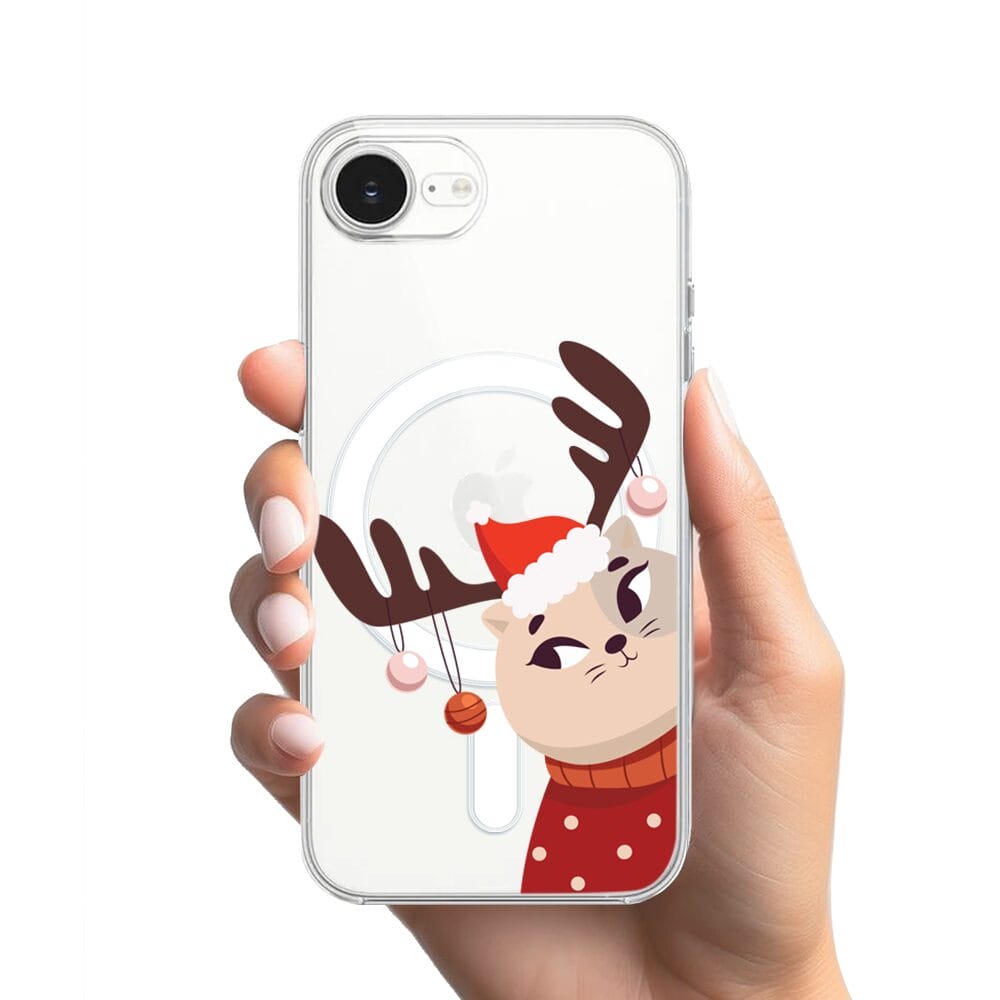 Etui do iPhone 16e z MagSafe przeźroczyste, silikonowe Flexi, Kotek przebrany za reniferka