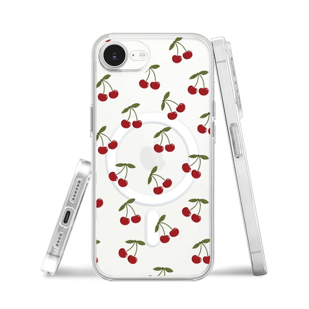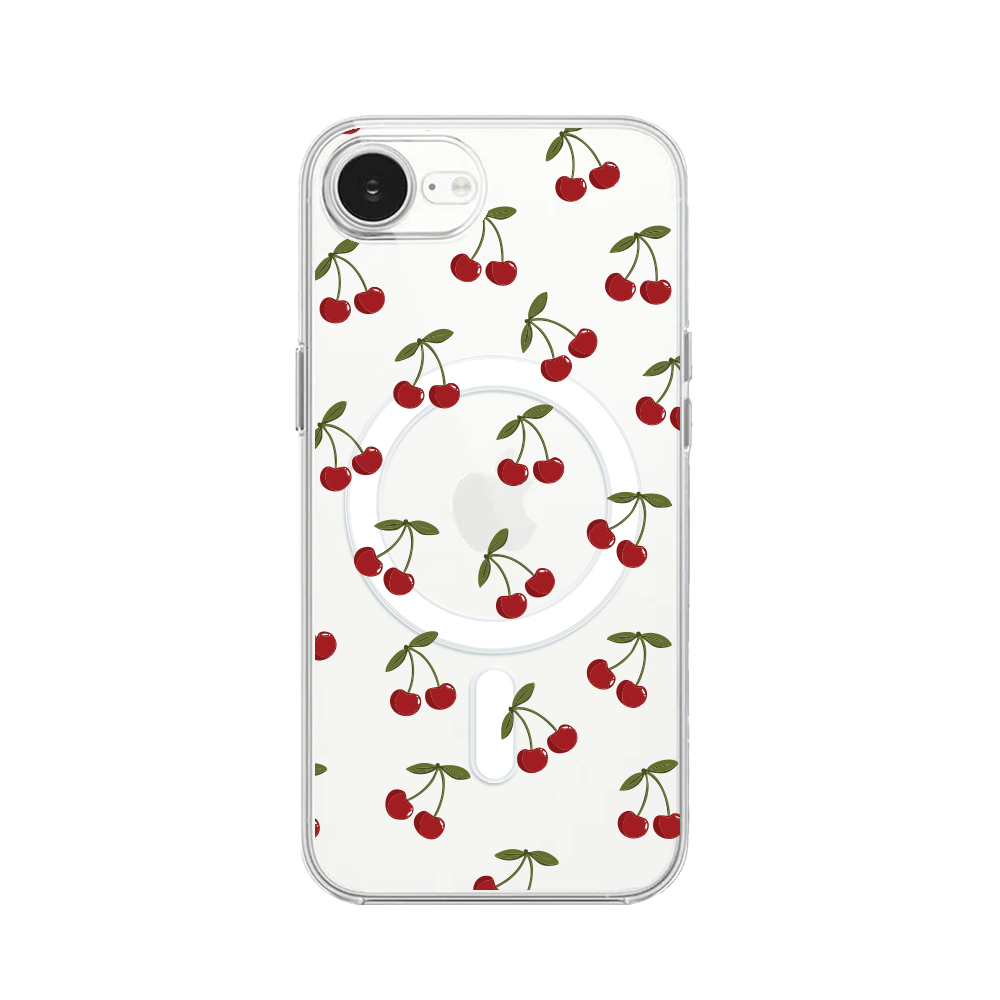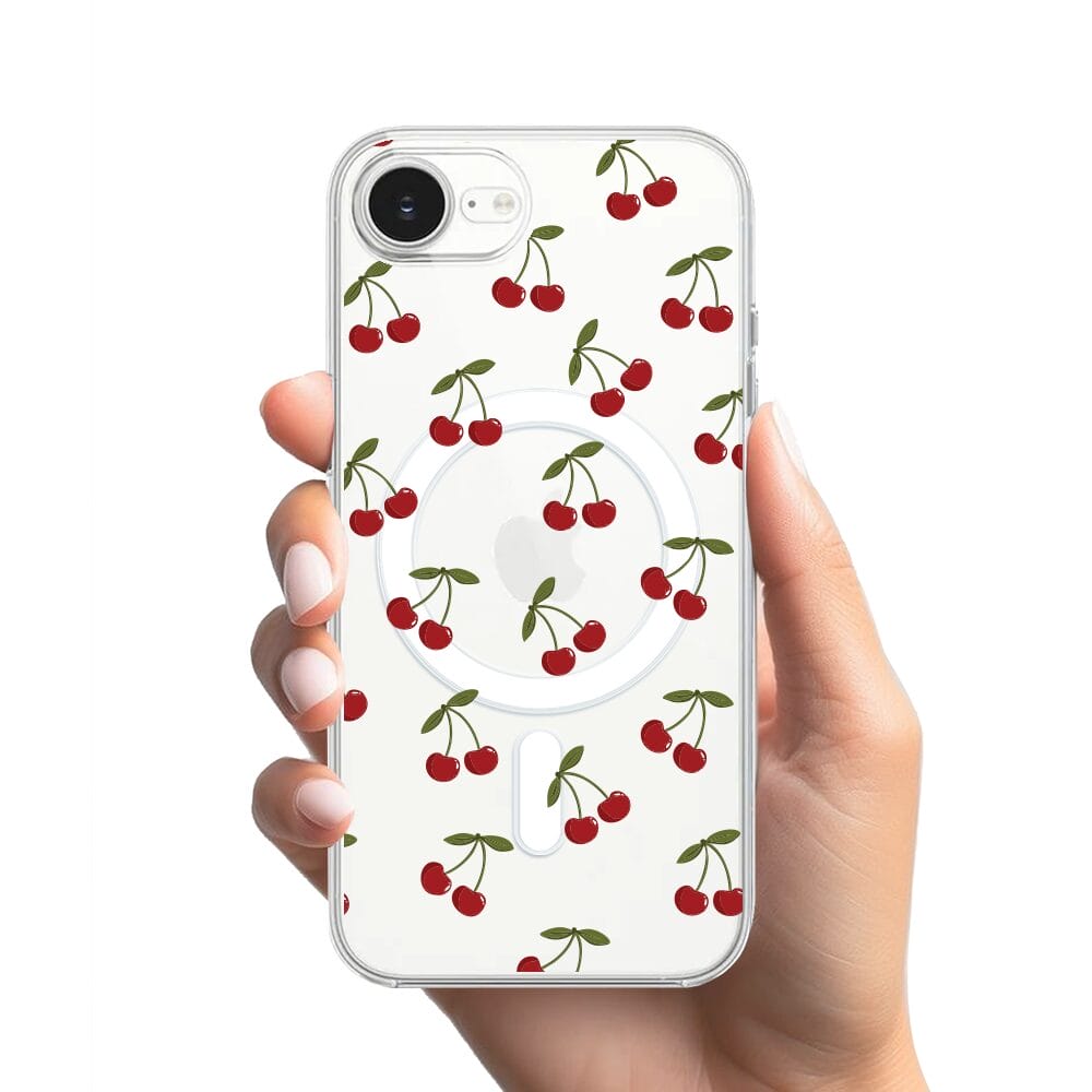 Etui do iPhone 16e z MagSafe przeźroczyste, silikonowe Flexi, Mini Patterns, Wiśnie
