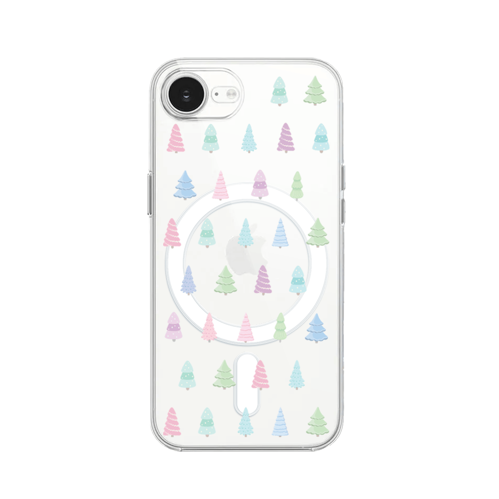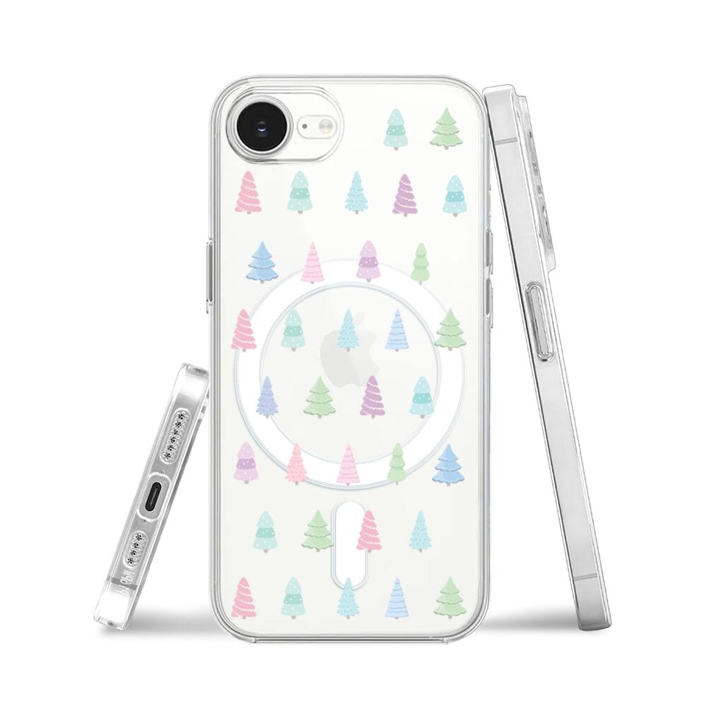 Etui do iPhone 16e z MagSafe przeźroczyste, silikonowe Flexi, Pastelowe choinki