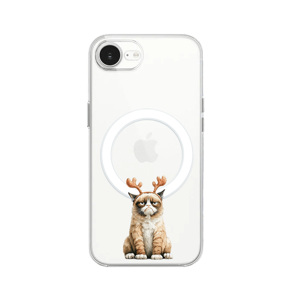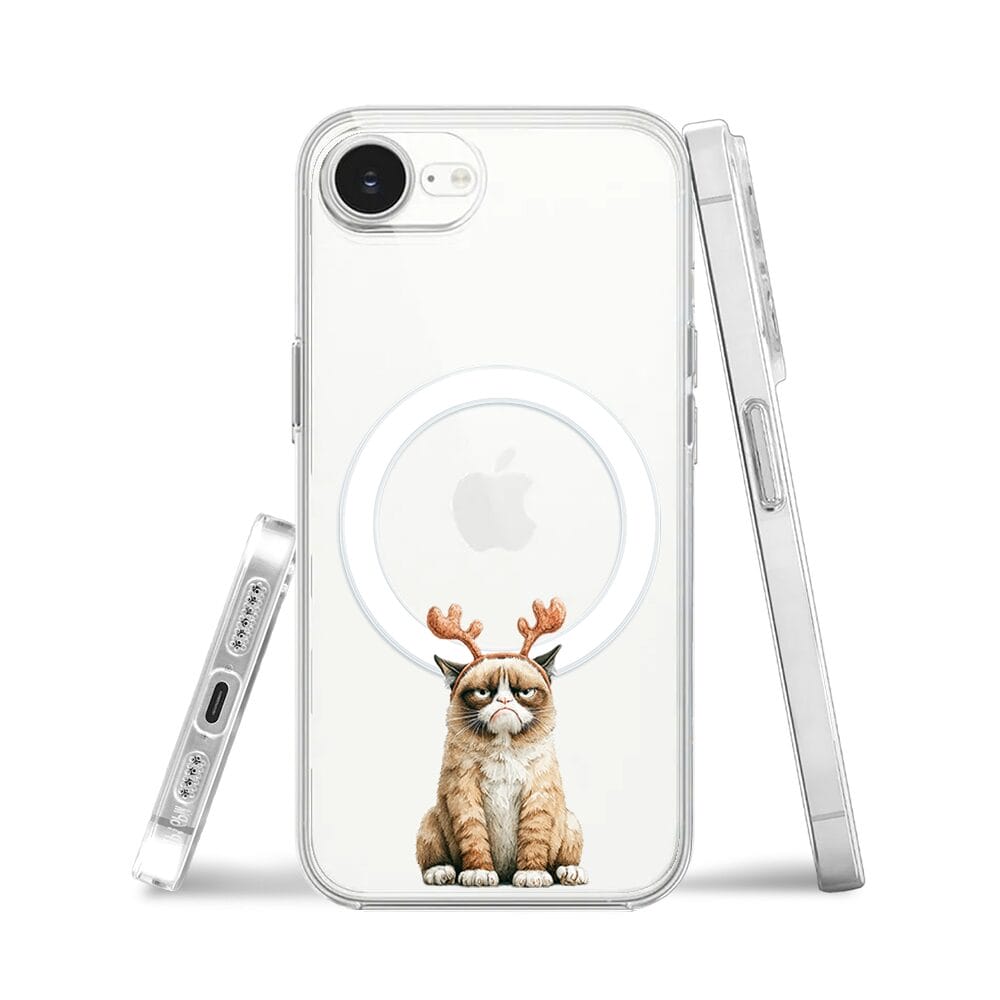 Etui do iPhone 16e z MagSafe przeźroczyste, silikonowe Flexi, Przytulne święta, Kot który nie chciał być reniferem