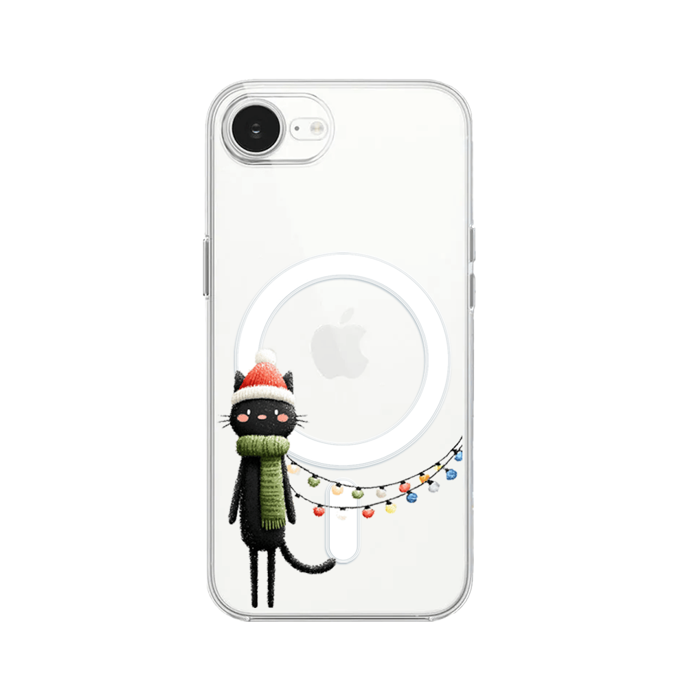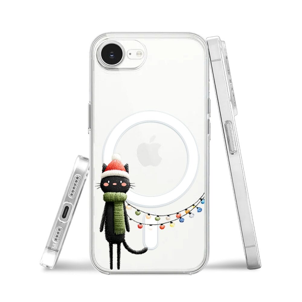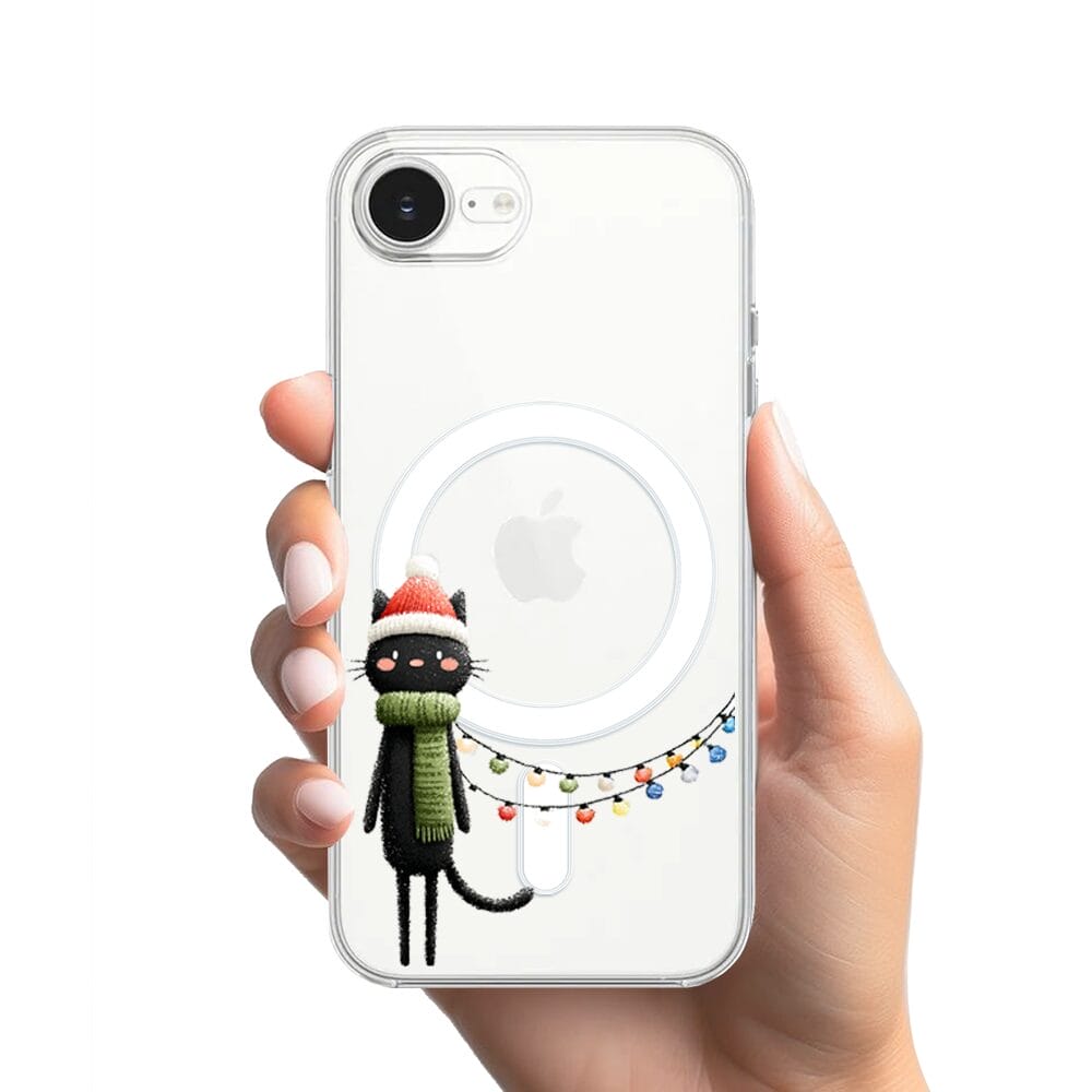 Etui do iPhone 16e z MagSafe przeźroczyste, silikonowe Flexi, Przytulne święta, Kot przebrany za elfa