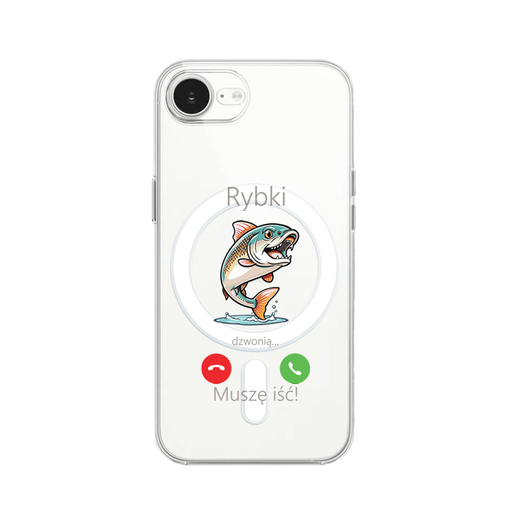 Etui do iPhone 16e z MagSafe przeźroczyste, silikonowe Flexi, rybki dzwonią