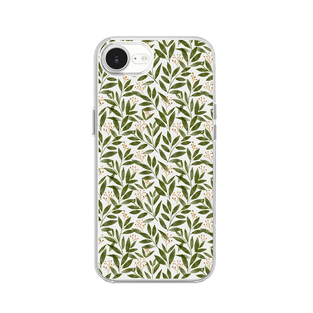 Etui do iPhone 16e z MagSafe przeźroczyste, silikonowe Flexi, zielone gałązki