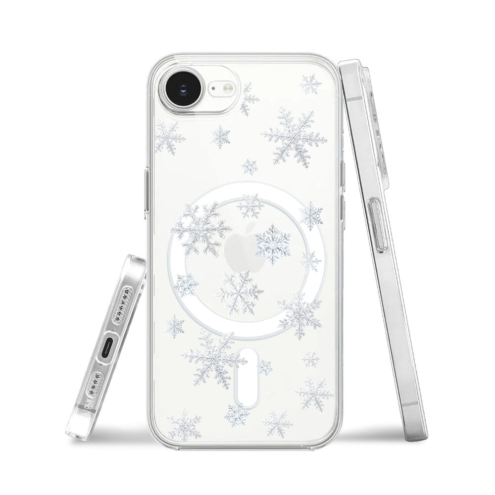 Etui do iPhone 16e z MagSafe przeźroczyste, silikonowe Flexi, Zimowa magia, Delikatne płatki śniegu