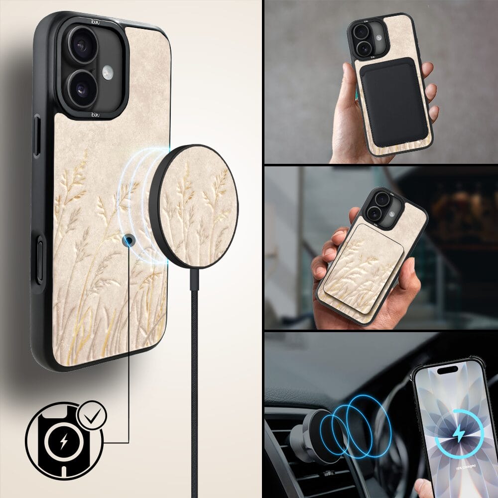 Etui do iPhone 17 IBIZU DropGuard Matt z MagSafe, Relief Garden, Kłosy z piaskowca