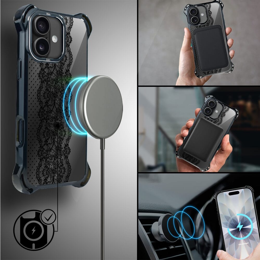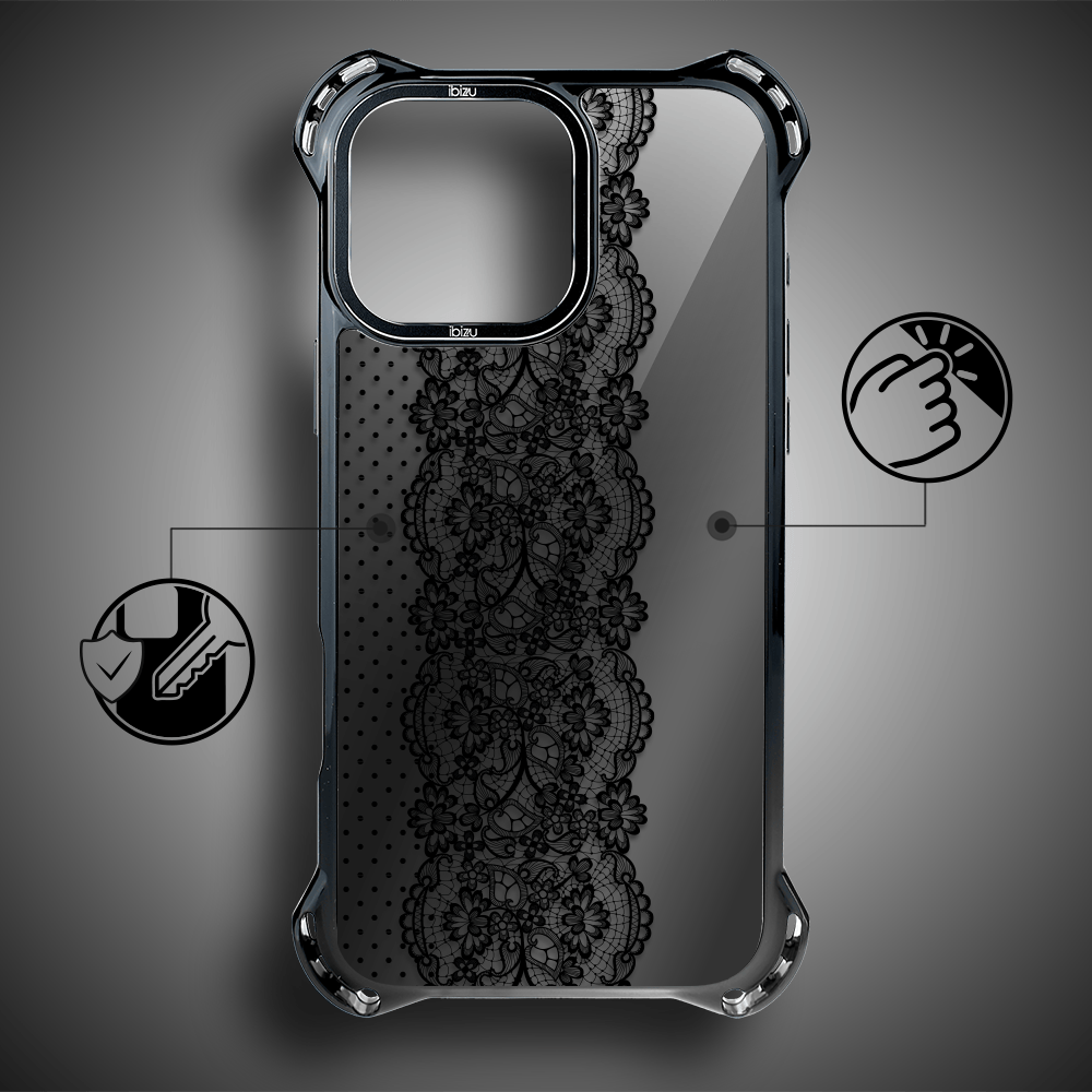 Etui do iPhone 17 IBIZU DropGuard Ultra z MagSafe, Midnight, Ornamentowa koronka