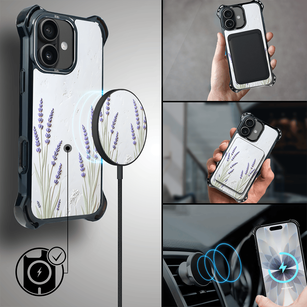 Etui do iPhone 17 IBIZU DropGuard Ultra z MagSafe, Relief Garden, Prowansalska lawenda