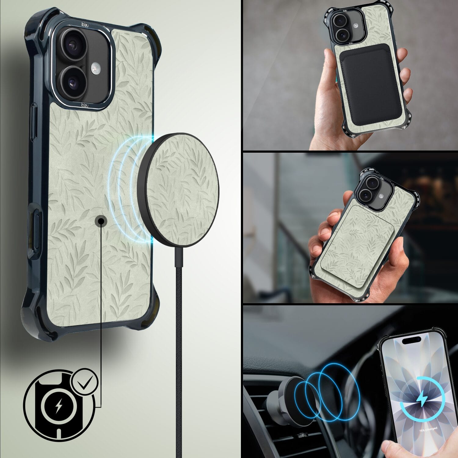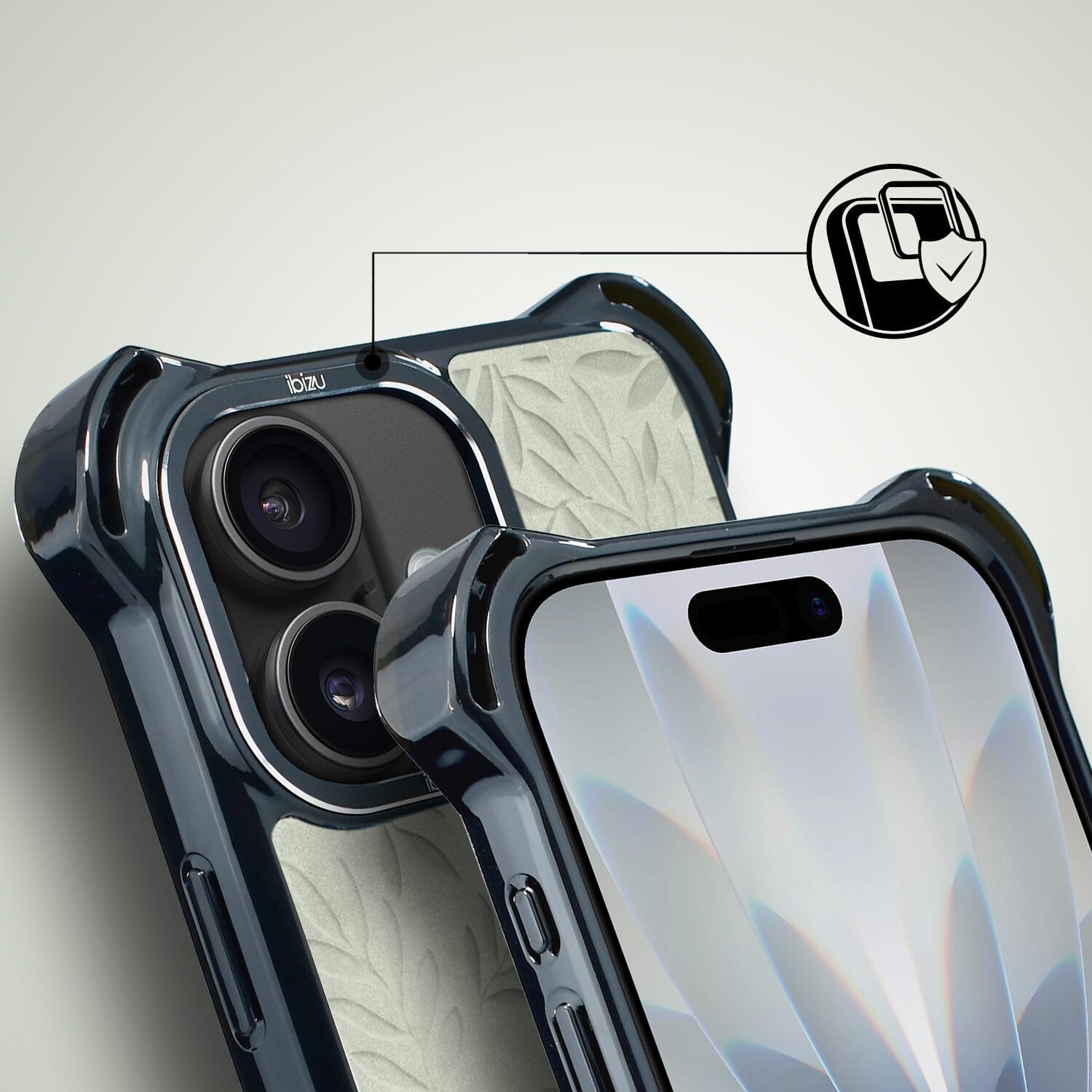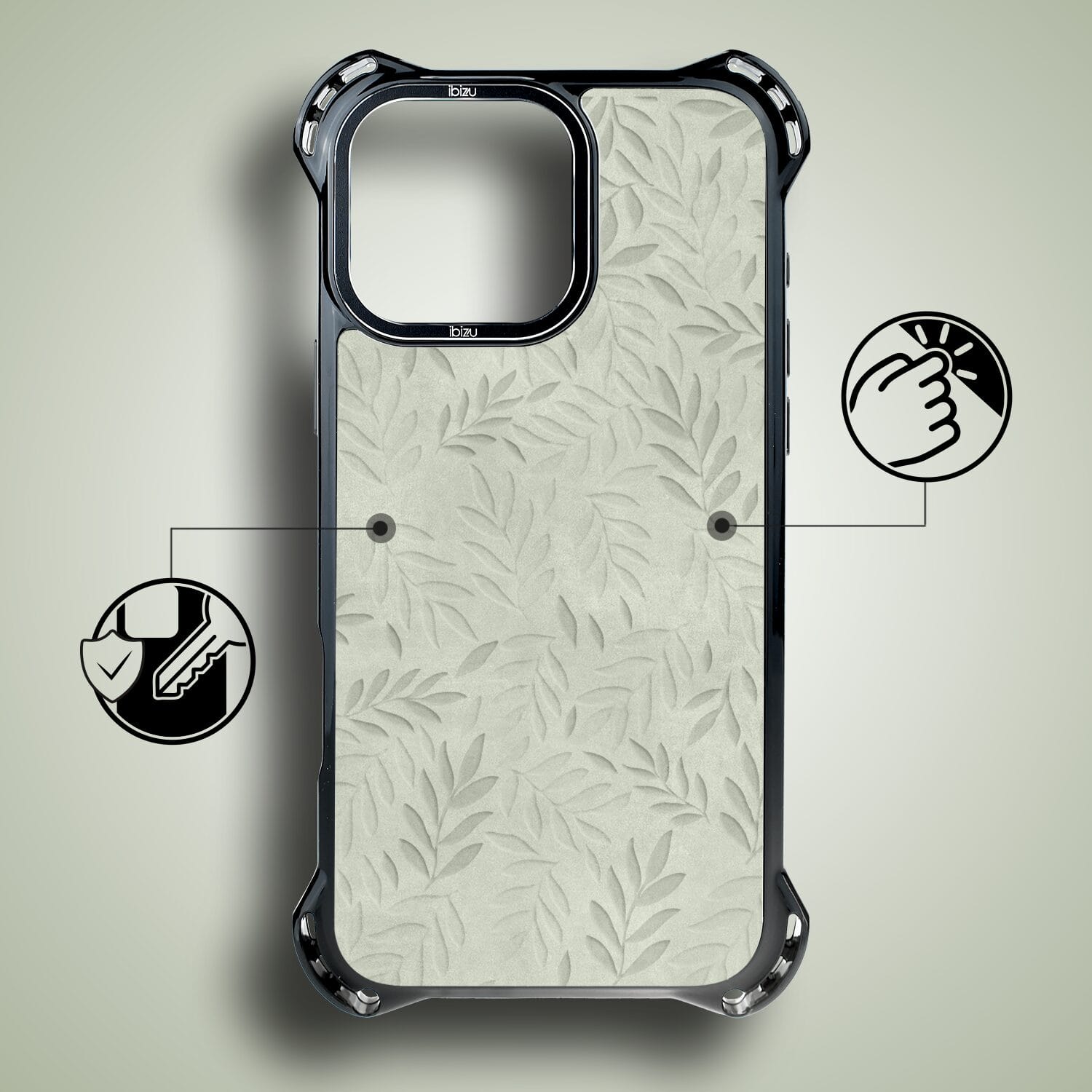Etui do iPhone 17 IBIZU DropGuard Ultra z MagSafe, Relief Garden, Ślad oliwki