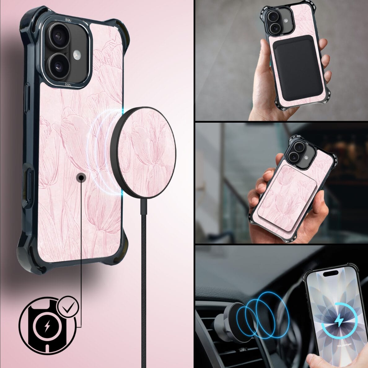 Etui do iPhone 17 IBIZU DropGuard Ultra z MagSafe, Relief Garden, Tulipanowy fresk